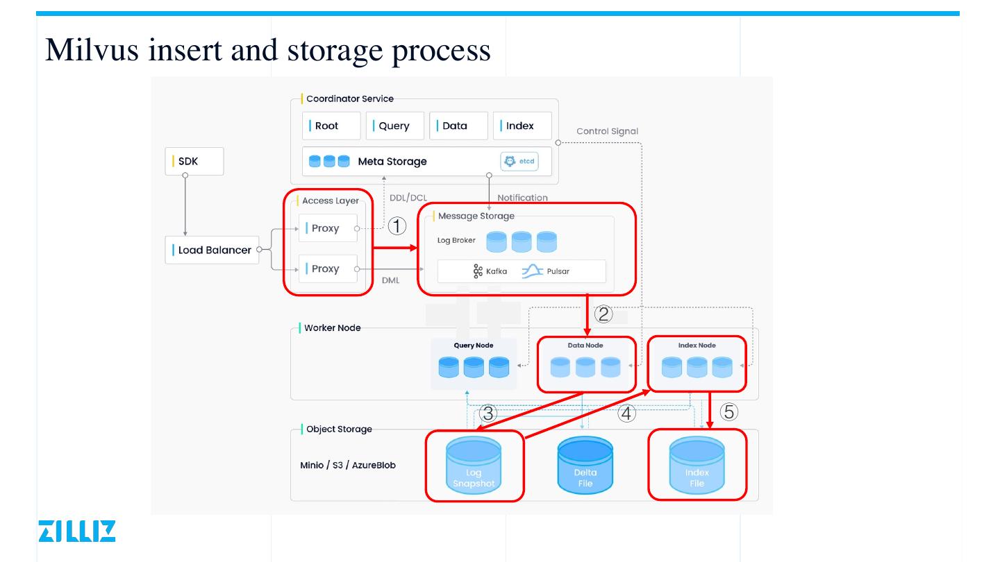 6 .Milvus insert and storage process ① ② ③ ④ ⑤