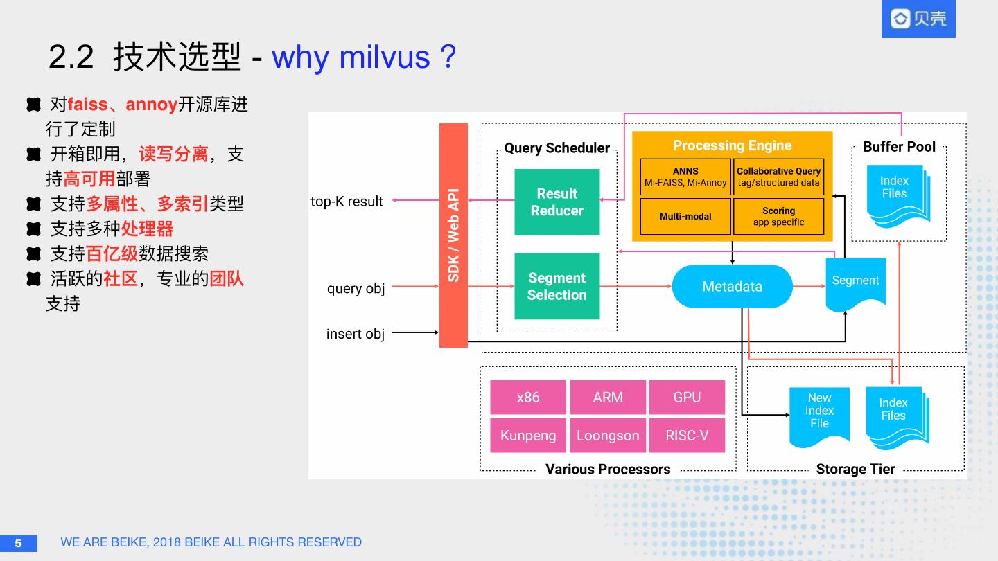 近些年,贝壳找房业务迅猛发展,在搜索、推荐、图谱、智能客服等业务场景下,对向量搜索提出了比较强的需求。面对多业务的需求,结合对业界已有工具的调研,最终选择了 Milvus 做为底层引擎,建设了一个通用的向量搜索平台,以解决“搜索”这个共性的问题。