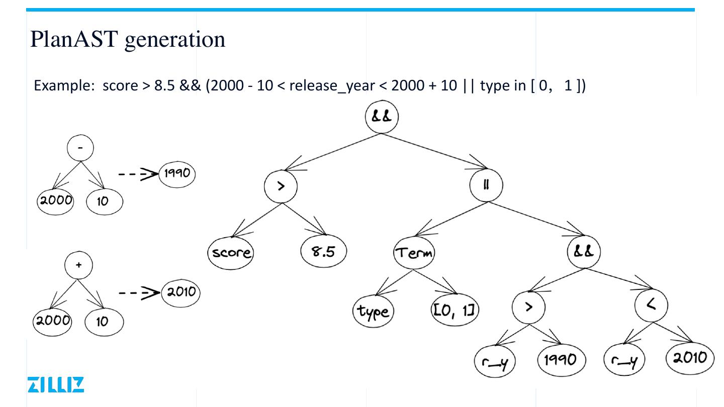 14 .PlanAST generation Example: score > 8.5 && (2000 - 10 < release_year < 2000 + 10 || type in [ 0,1 ])