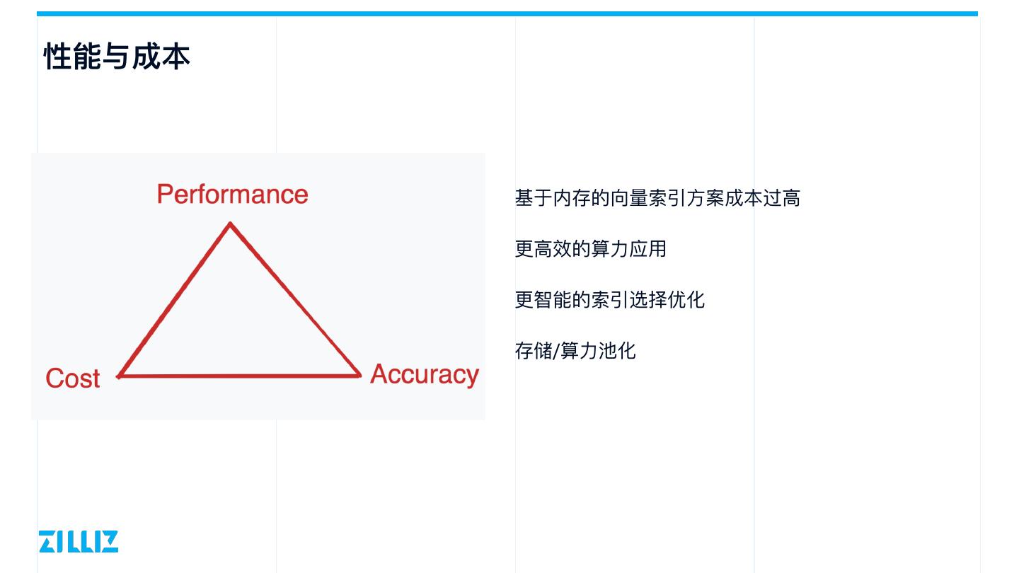 5 .性能与成本 基于内存的向量索引⽅案成本过⾼ 更⾼效的算⼒应⽤ 更智能的索引选择优化 存储/算⼒池化