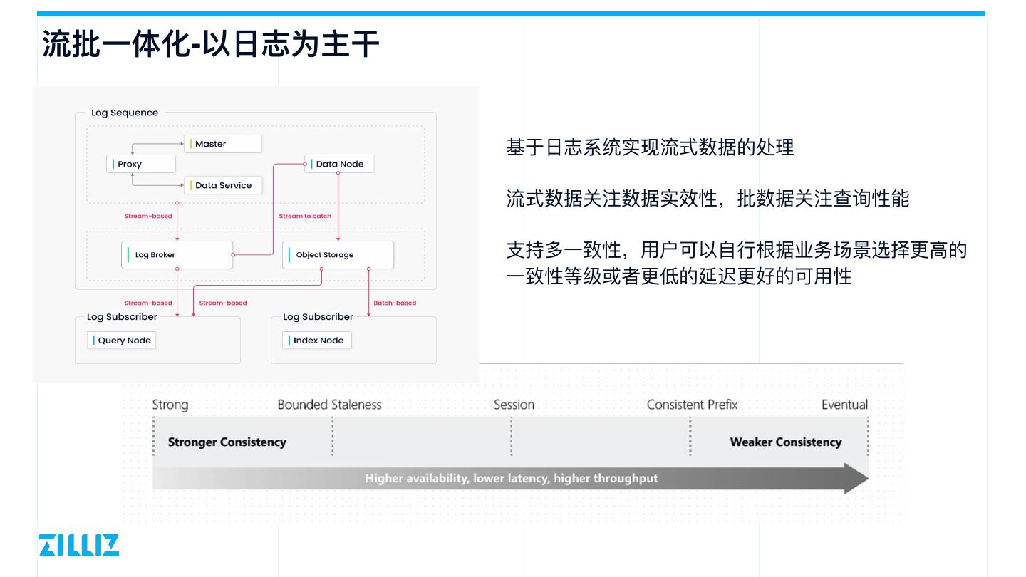 12 .流批⼀体化-以⽇志为主⼲ 基于⽇志系统实现流式数据的处理 流式数据关注数据实效性,批数据关注查询性能 ⽀持多⼀致性,⽤户可以⾃⾏根据业务场景选择更⾼的 ⼀致性等级或者更低的延迟更好的可⽤性