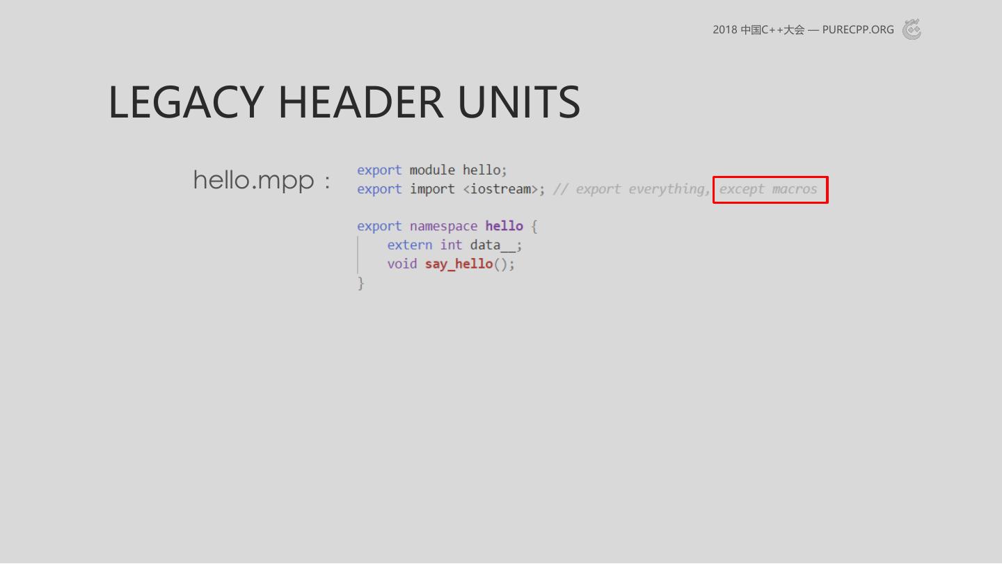 10 . 2018 中国C++大会 — PURECPP.ORG HEADER => MODULE