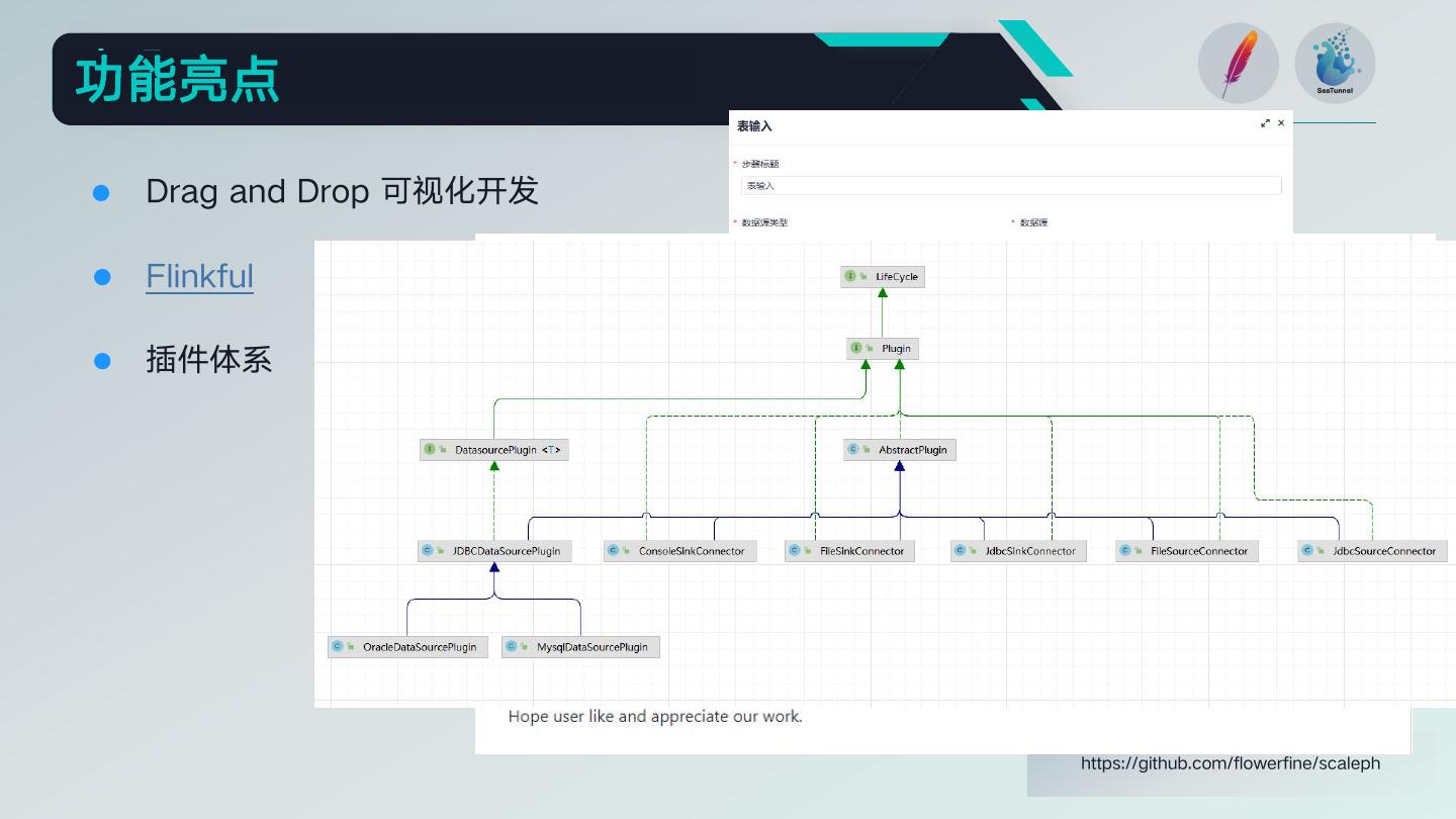 14 .标题 功能亮点 Drag and Drop 可视化开发 Flinkful 插件体系 https://github.com/flowerfine/scaleph