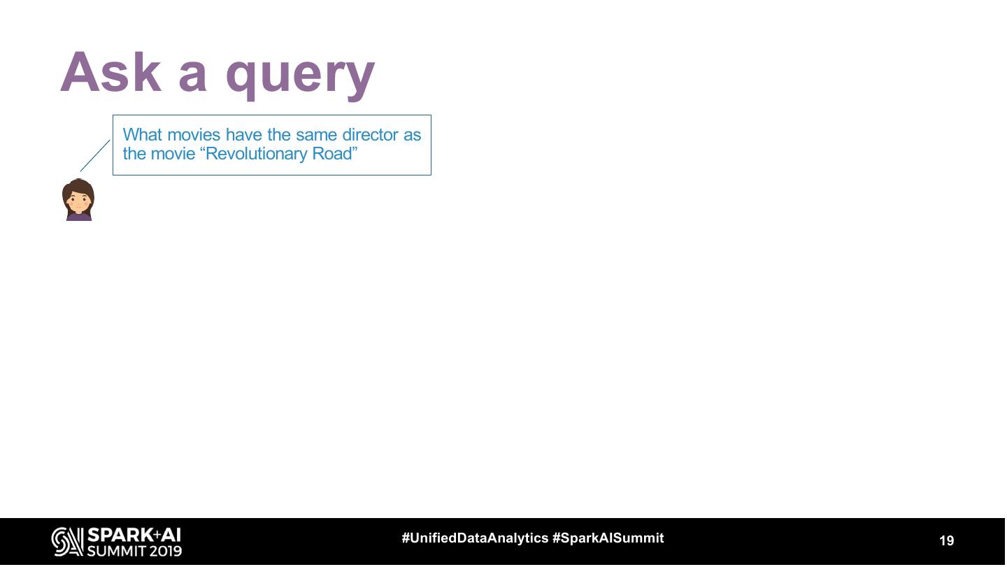 19 .Ask a query What movies have the same director as the movie “Revolutionary Road” #UnifiedDataAnalytics #SparkAISummit 19