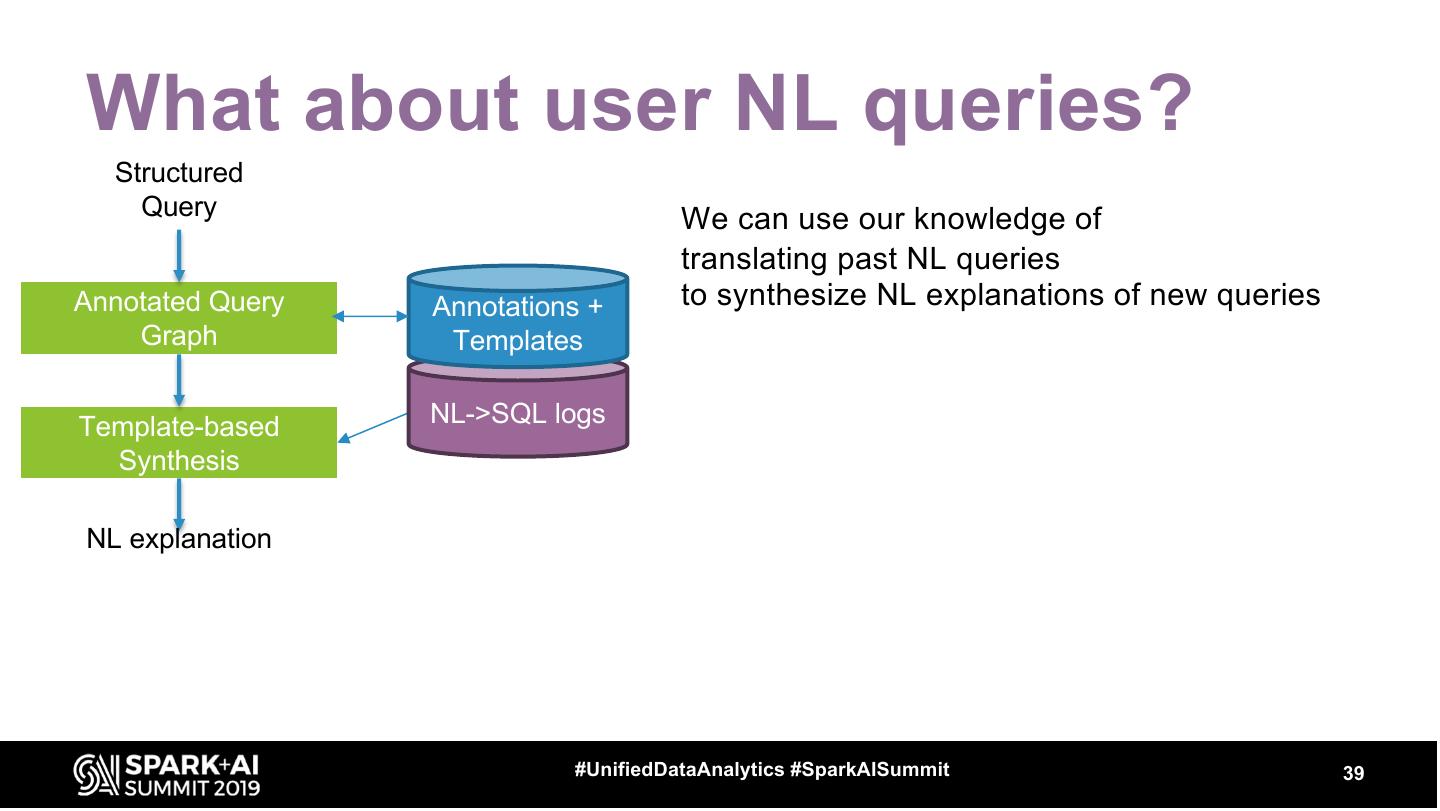 14 . Intelligent Data Assistant Syntax-based (NLP) Query Understanding Data-based Query Understanding NL Query Explanations Query Recommendations #UnifiedDataAnalytics #SparkAISummit 14