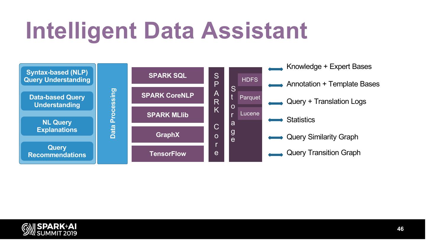 In this talk, we will present a Spark-based architecture of an intelligent data assistant, a system that combines real-time data processing and analytics over large amounts of data with user interaction in natural language, and we will argue why Spark is the right platform for next-gen intelligent data assistants.