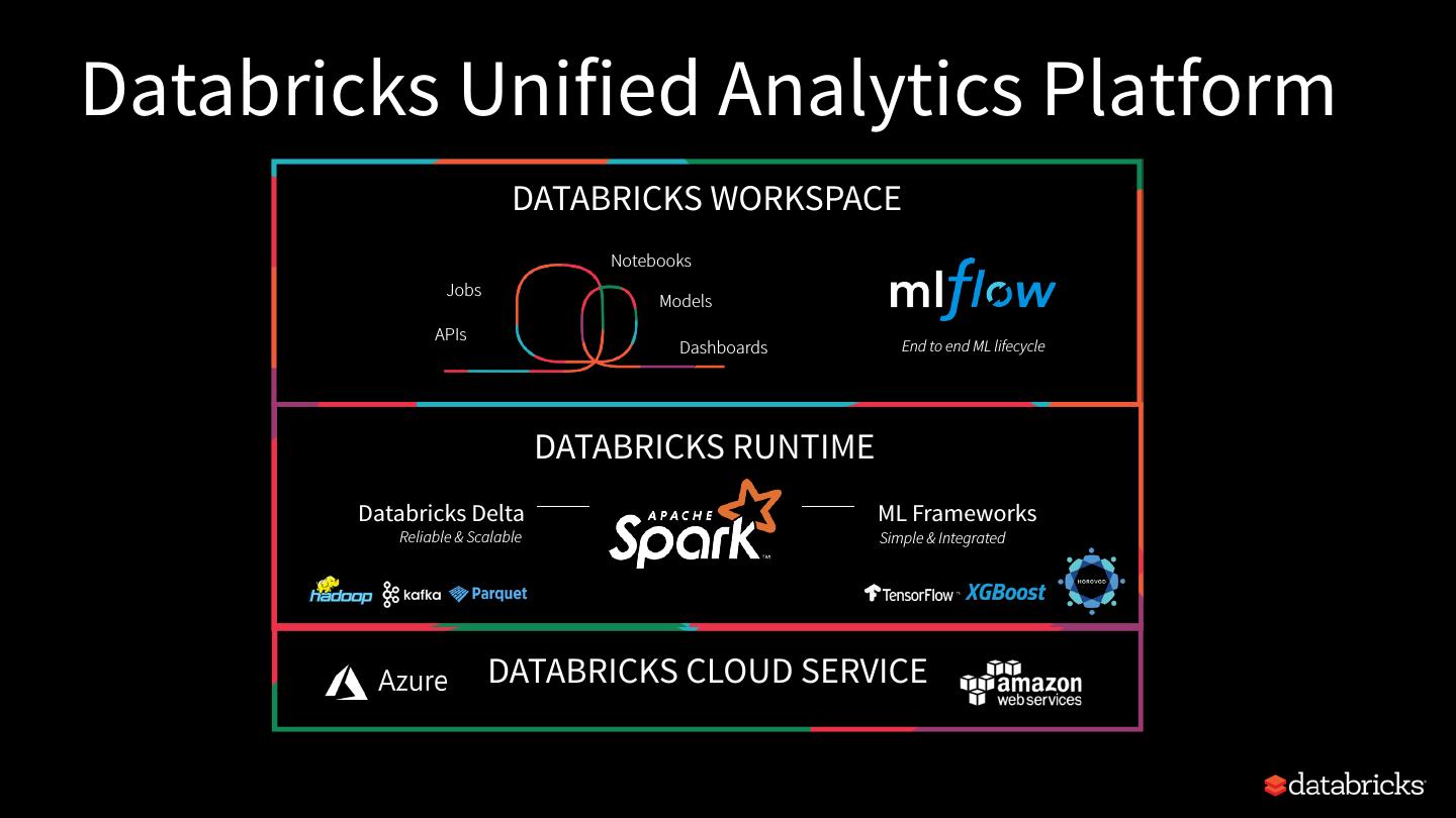 4 .Databricks Unified Analytics Platform DATABRICKS WORKSPACE Notebooks Jobs Models APIs Dashboards End to end ML lifecycle DATABRICKS RUNTIME Databricks Delta ML Frameworks Reliable & Scalable Simple & Integrated DATABRICKS CLOUD SERVICE