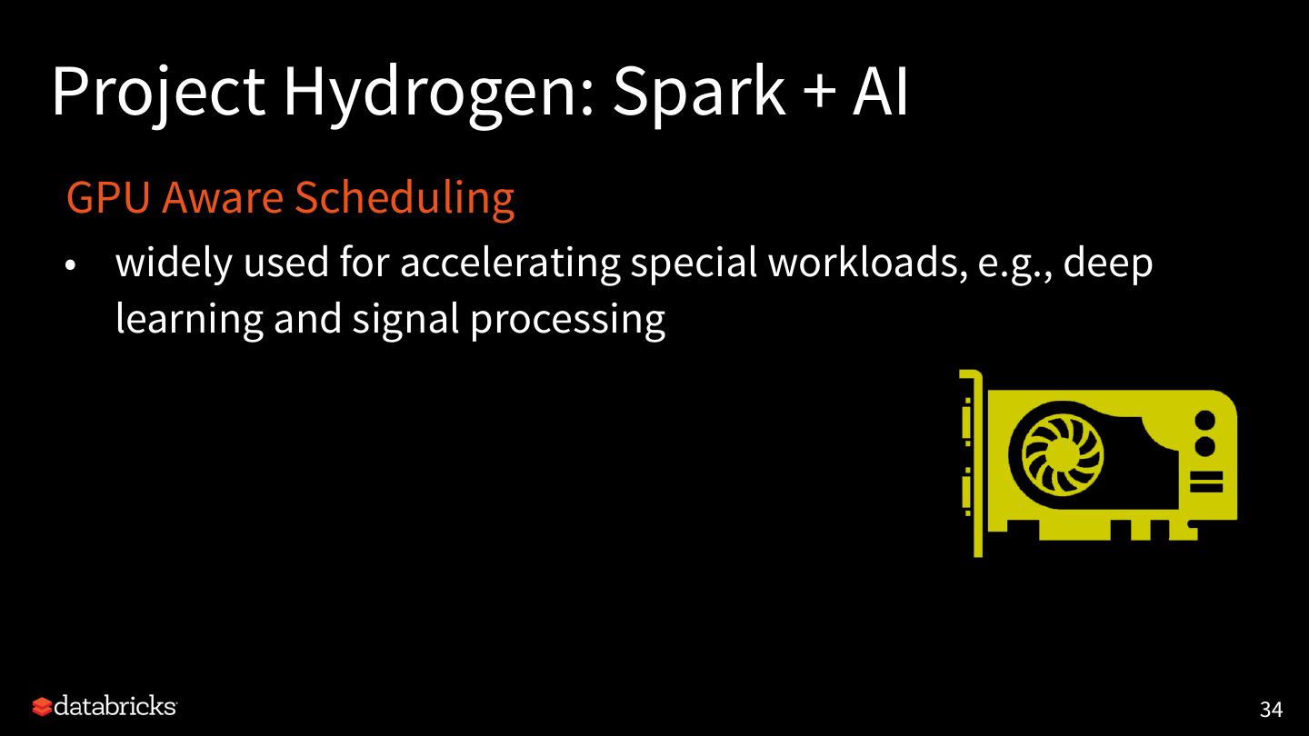 15 .Project Hydrogen: Spark + AI A gang scheduling to Apache Spark that embeds a distributed DL job as a Spark stage to simplify the distributed training workflow. [SPARK-24374] Task 1 Task 2 Task 3 15