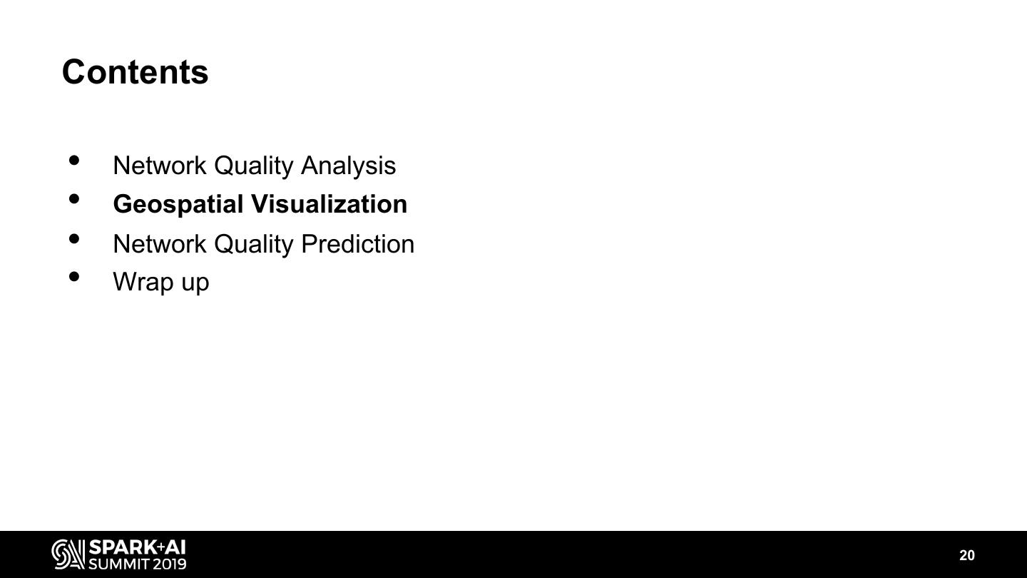 20 .Contents • Network Quality Analysis • Geospatial Visualization • Network Quality Prediction • Wrap up 20