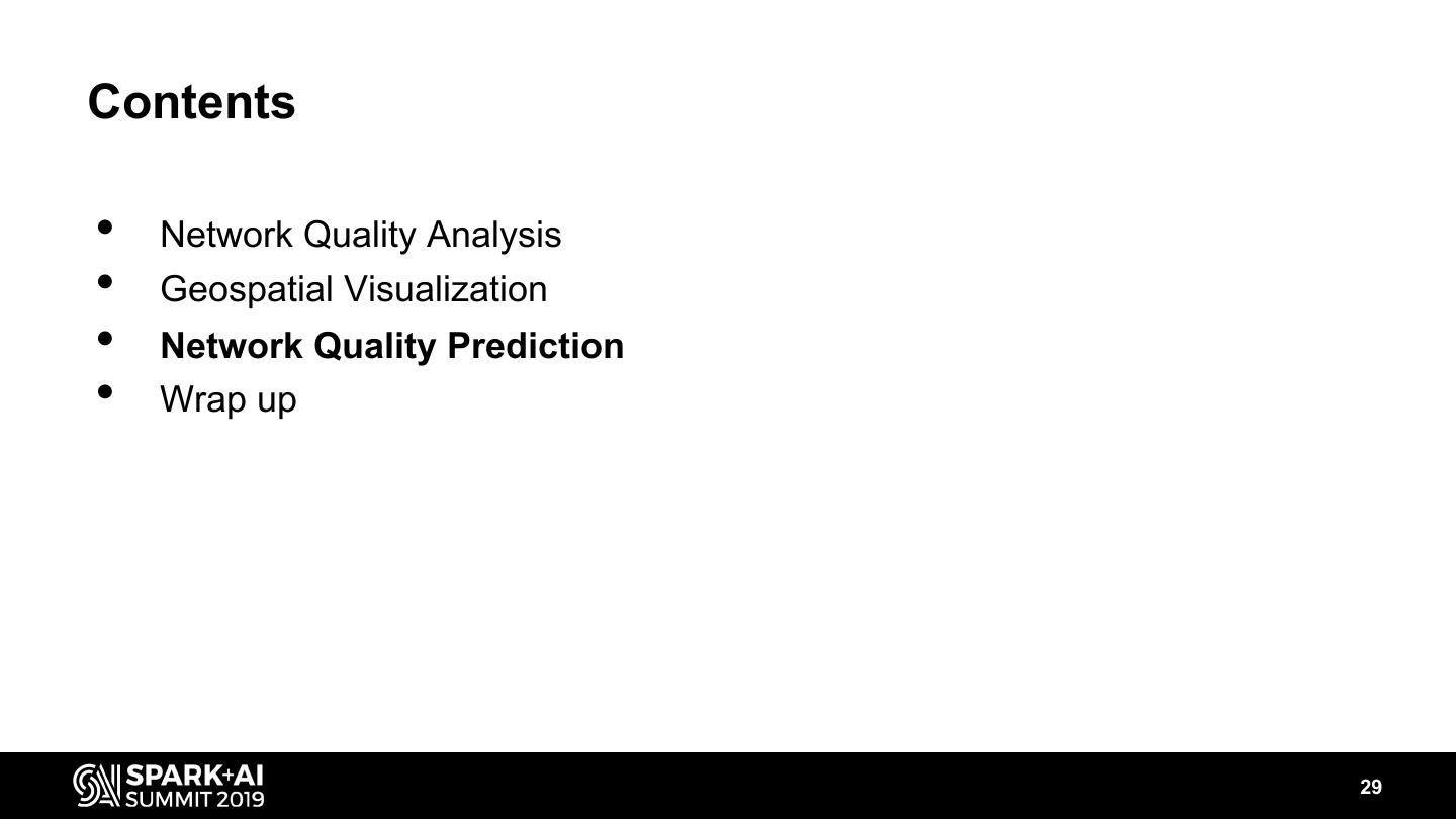 29 .Contents • Network Quality Analysis • Geospatial Visualization • Network Quality Prediction • Wrap up 29
