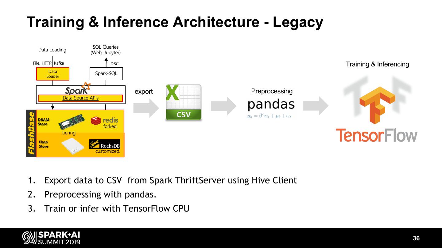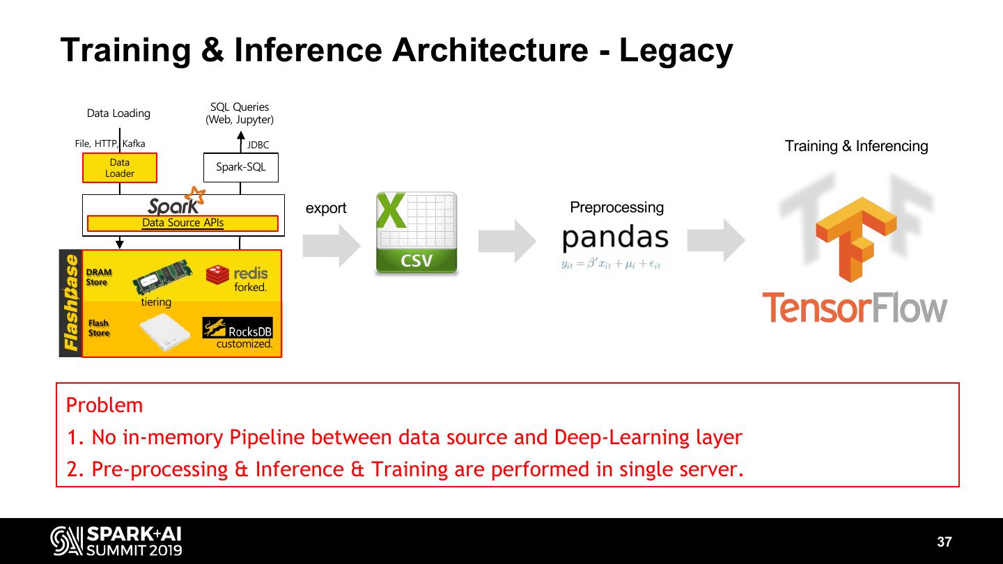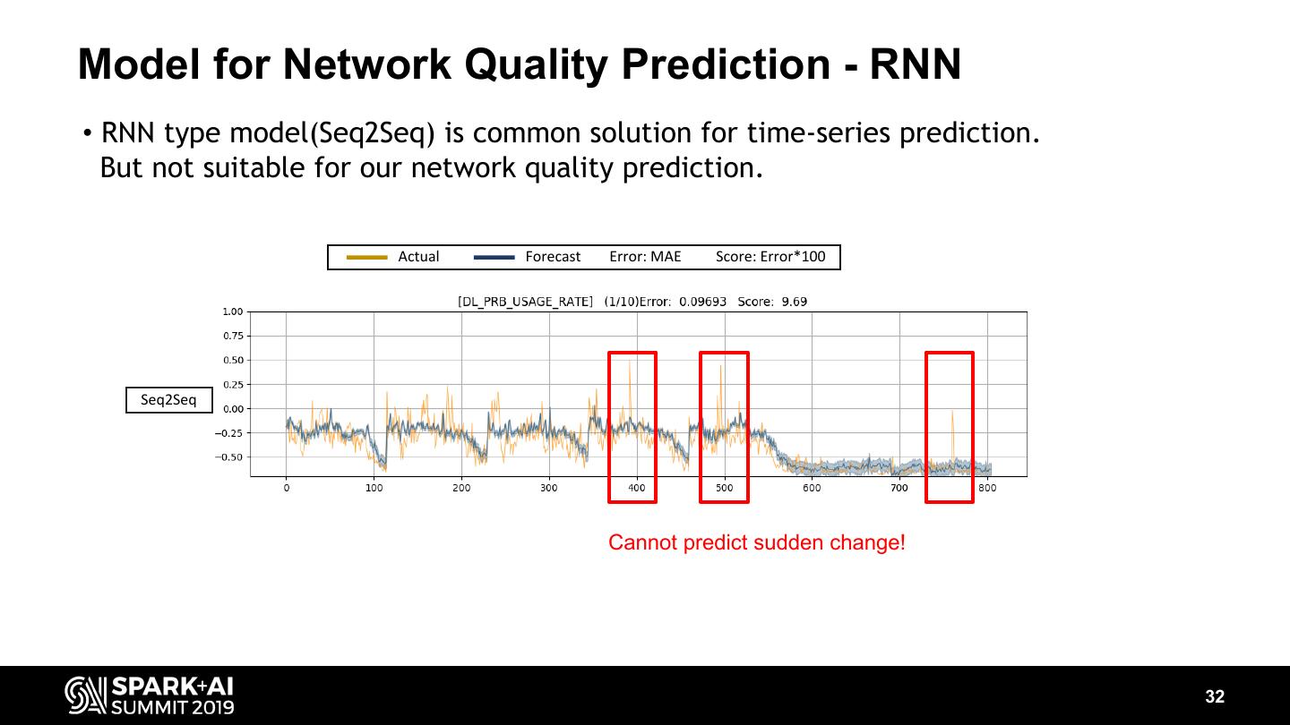 In order to address previous problems of Spark based on HDFS, we have developed a new data store for SparkSQL consisting of Redis and RocksDB that allows us to distribute and store these data in real time and analyze it right away, We were not satisfied with being able to analyze network quality in real-time, we tried to predict network quality in near future in order to quickly detect and recover network device failures, by designing network signal pattern-aware DNN model and a new in-memory data pipeline from spark to tensorflow.