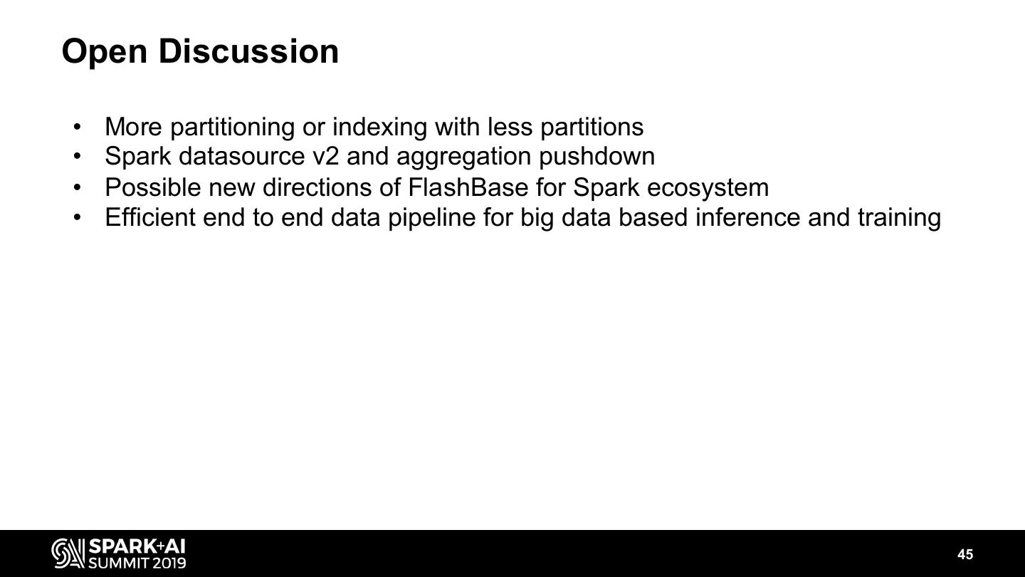 12 . Query Acceleration 1 - Extreme Partitioning Cell tower partitions wvcv3 wvcyw wvfj6 … wyfb1 wyf9w FlashBase 201804221100 • Up-to 2 billion partitions in a single node 201804221105 201804221110 • Needs 15 nodes to store 30 billion partitions Time partitions … Hadoop File System 201904221105 • Up-to 1 billion partitions in a single cluster 201904221110 • 300GB DRAM for 1 billion partitions (150 byte DRAM for a file or a block) A partition combination for network quality analysis • 300K (cell towers) X 100K (time slots) = 30B (total partitions) Node spec: E5 2680 v4 CPU, 256GB DRAM, 20TB SSDs 12