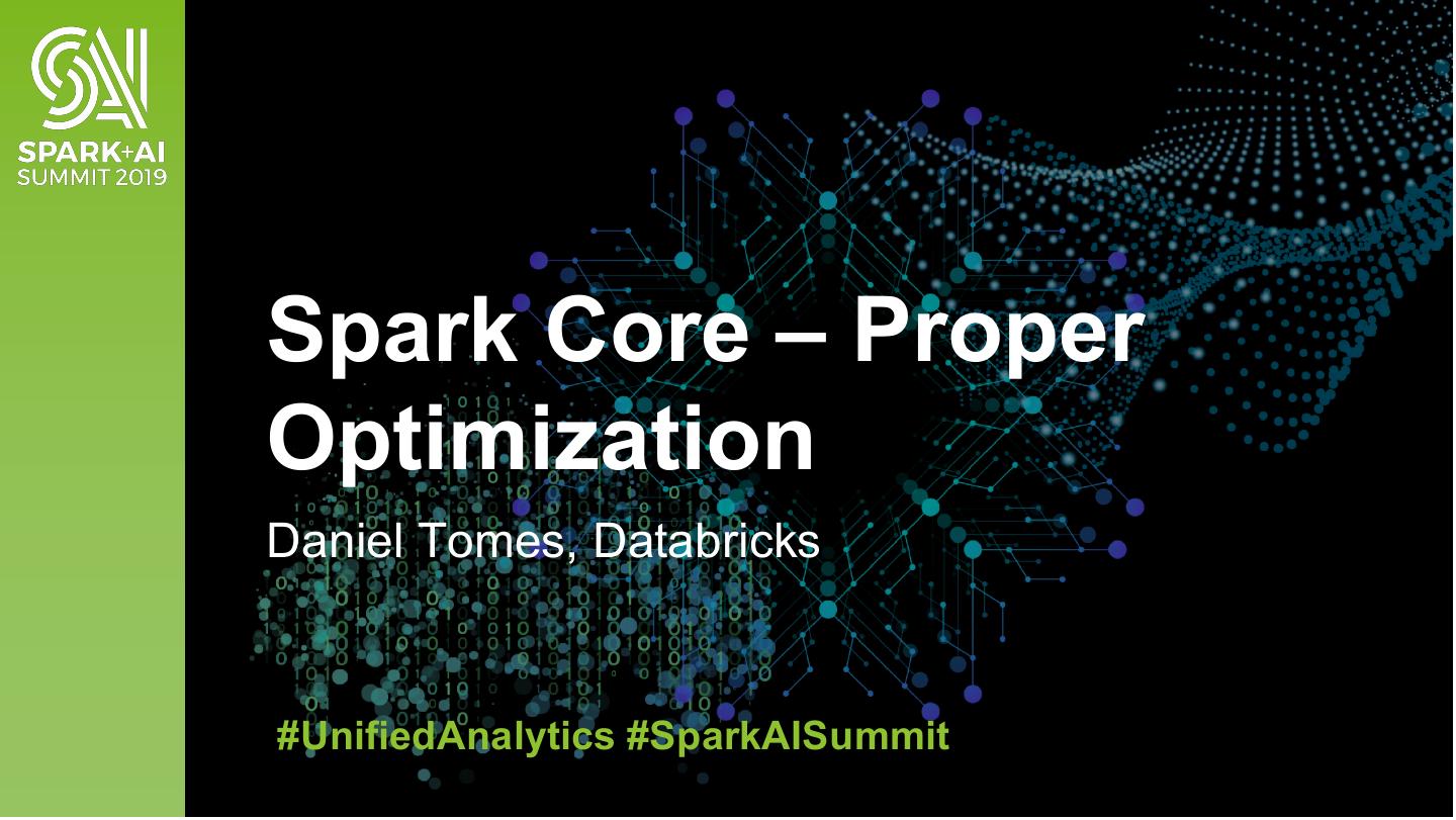 2 .Spark Core – Proper Optimization Daniel Tomes, Databricks #UnifiedAnalytics #SparkAISummit