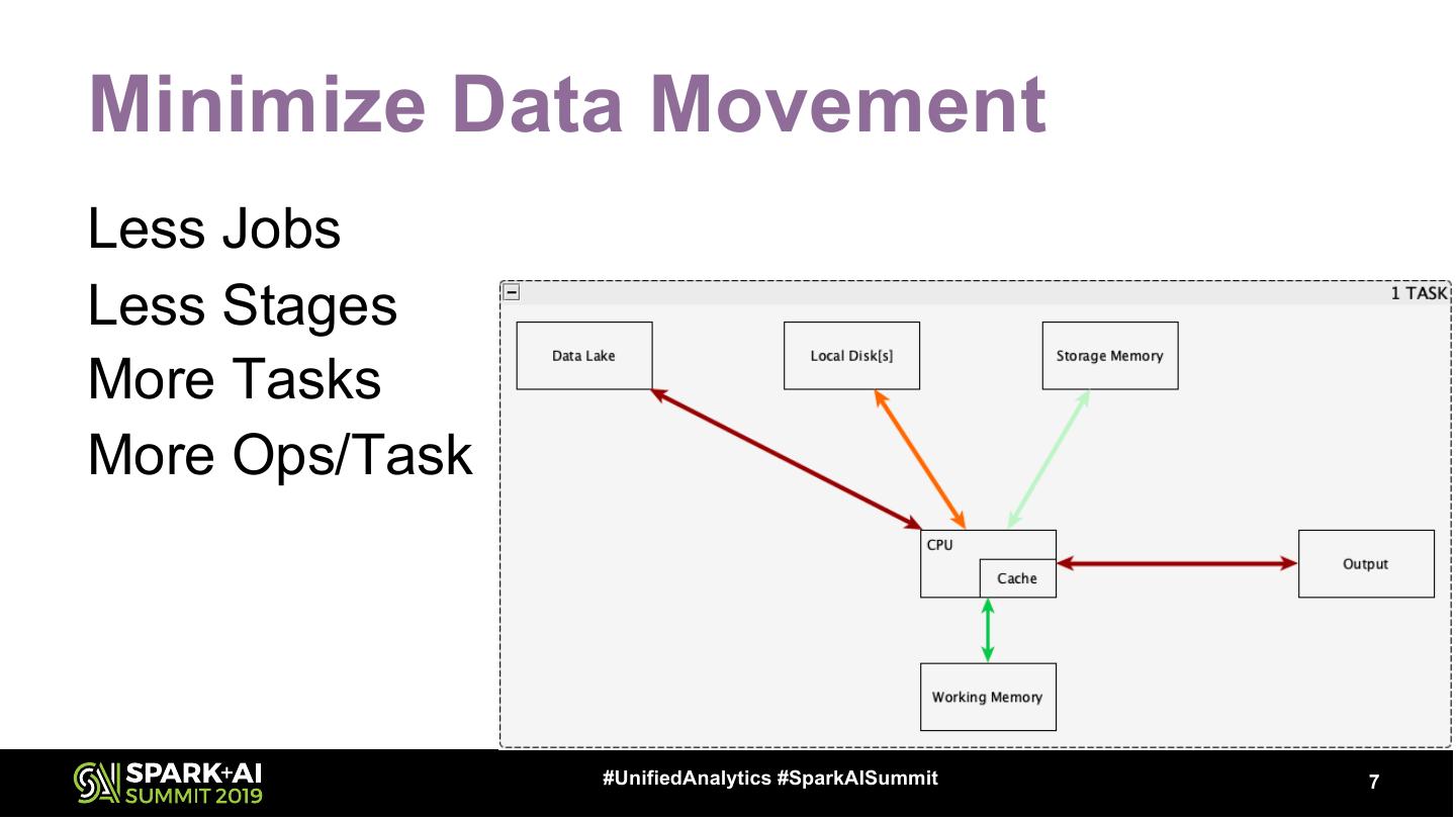 7 .Minimize Data Movement Less Jobs Less Stages More Tasks More Ops/Task #UnifiedAnalytics #SparkAISummit 7