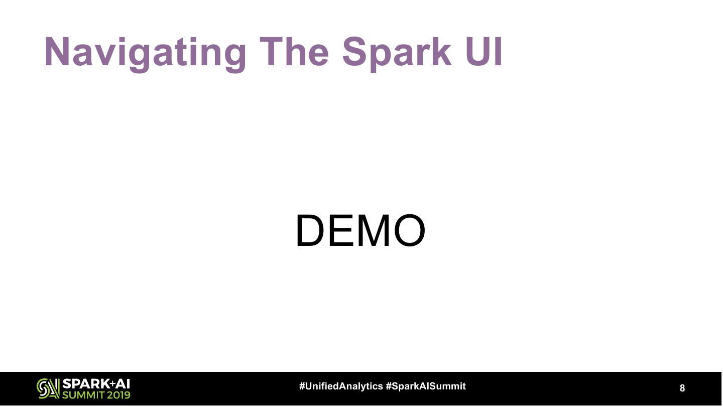 8 .Navigating The Spark UI DEMO #UnifiedAnalytics #SparkAISummit 8