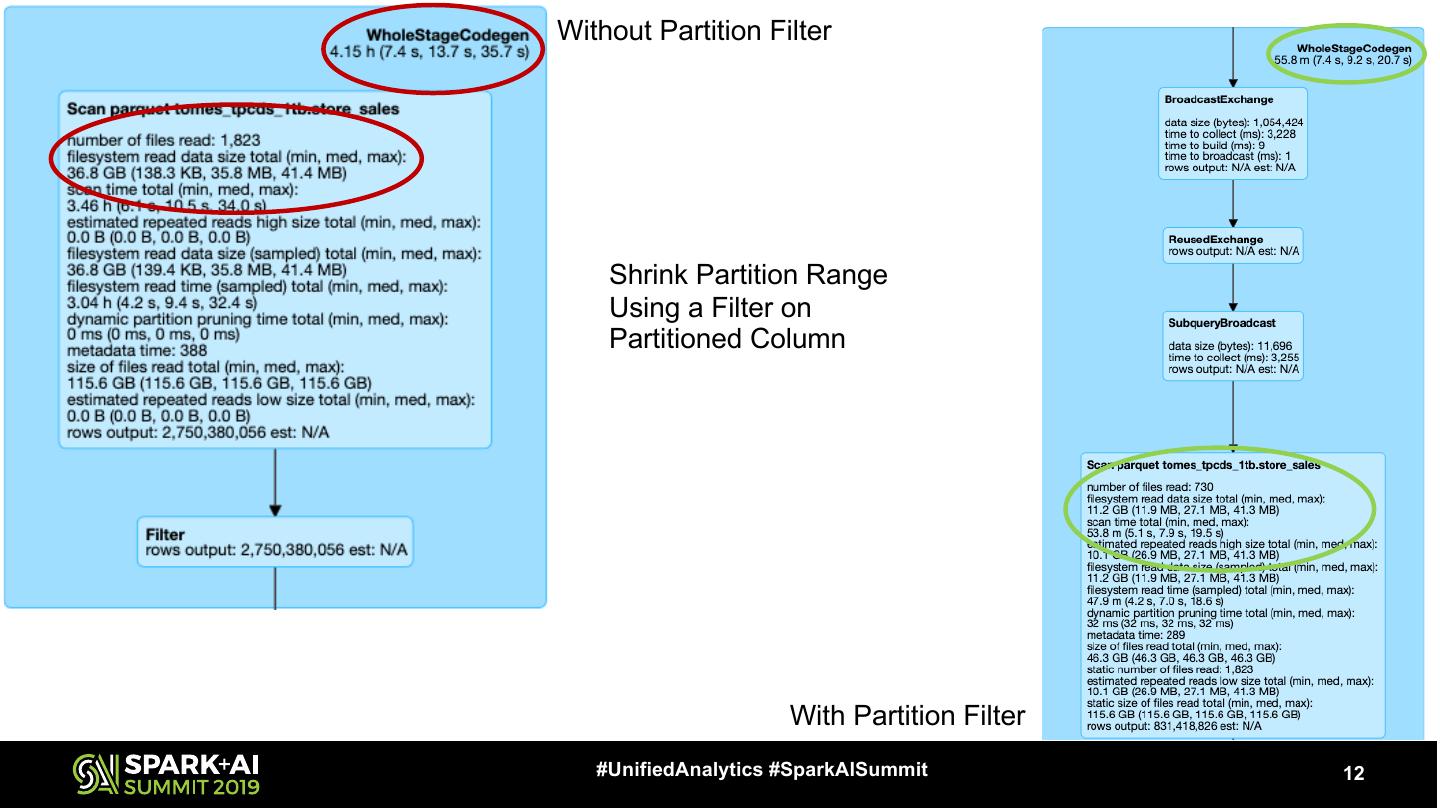 12 .Without Partition Filter Shrink Partition Range Using a Filter on Partitioned Column With Partition Filter #UnifiedAnalytics #SparkAISummit 12