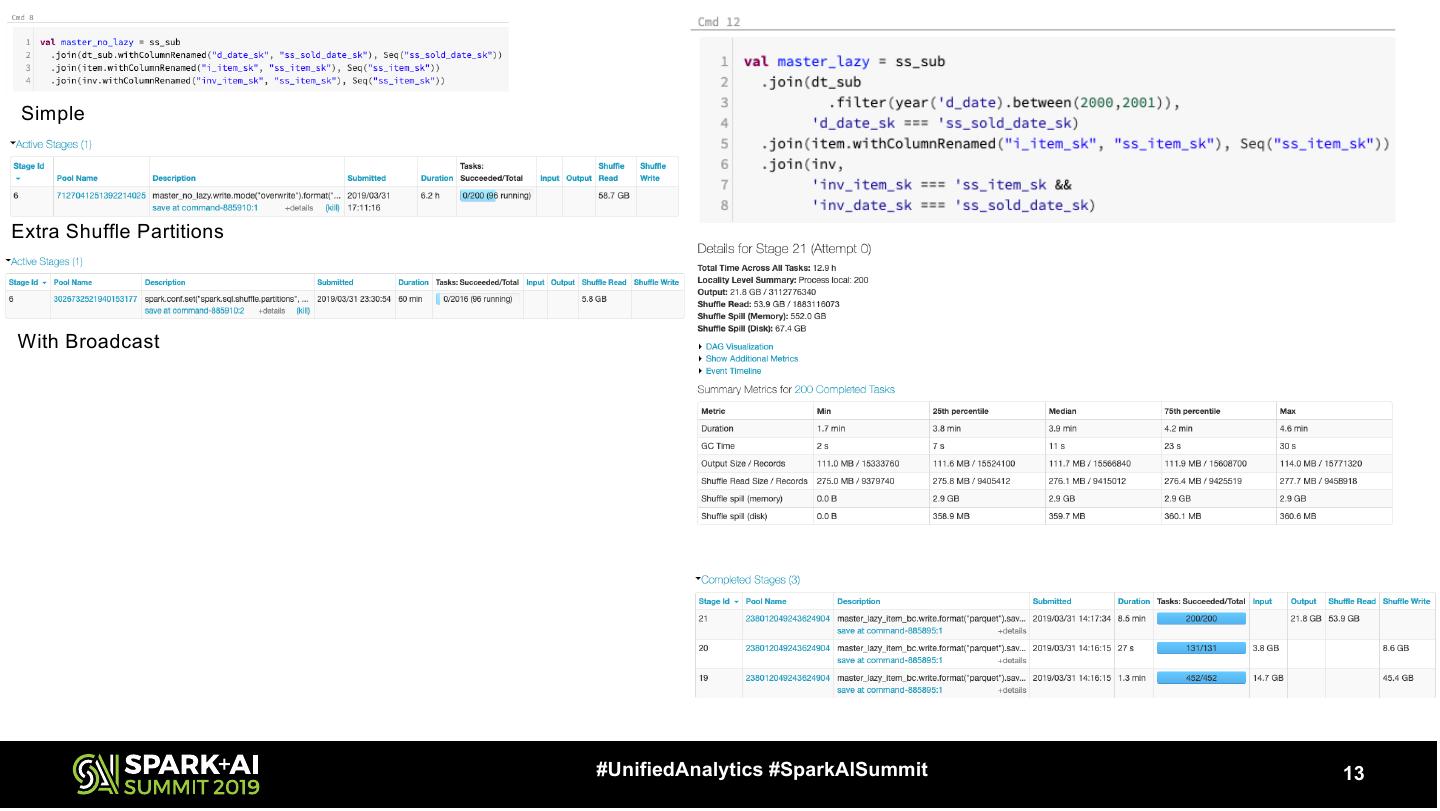 13 . Simple Extra Shuffle Partitions With Broadcast #UnifiedAnalytics #SparkAISummit 13