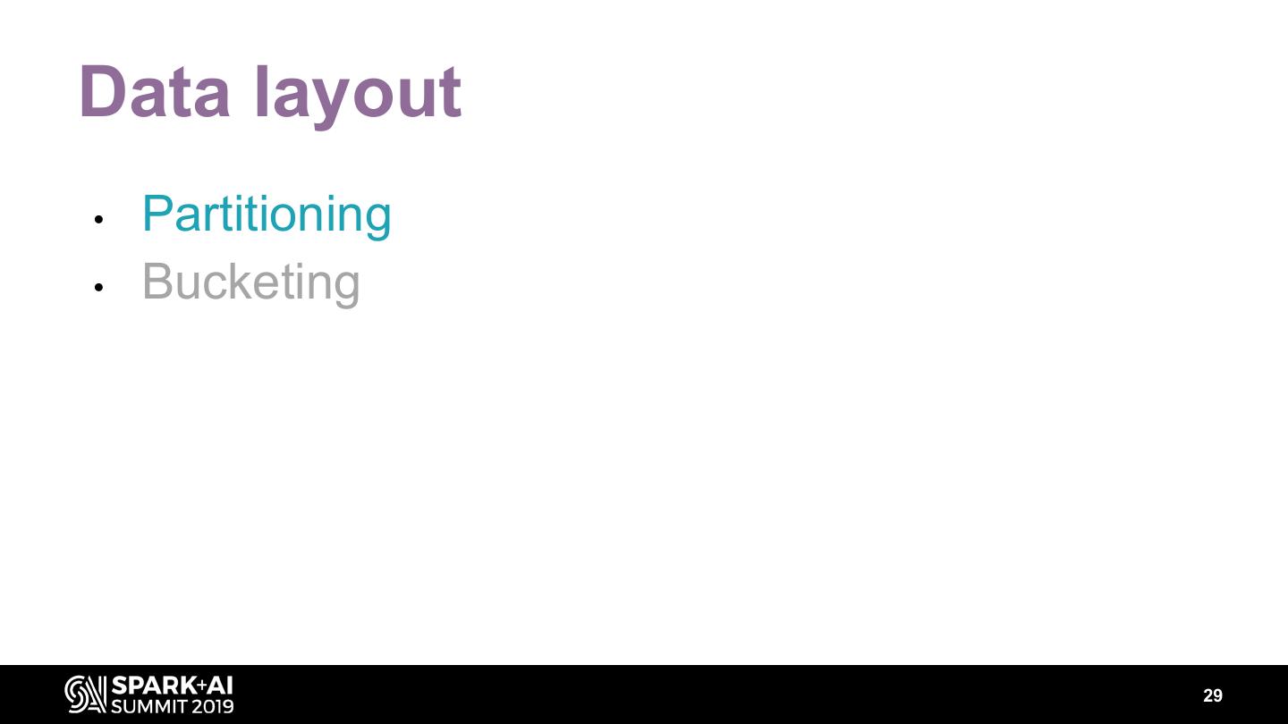 29 .Data layout • Partitioning • Bucketing 29