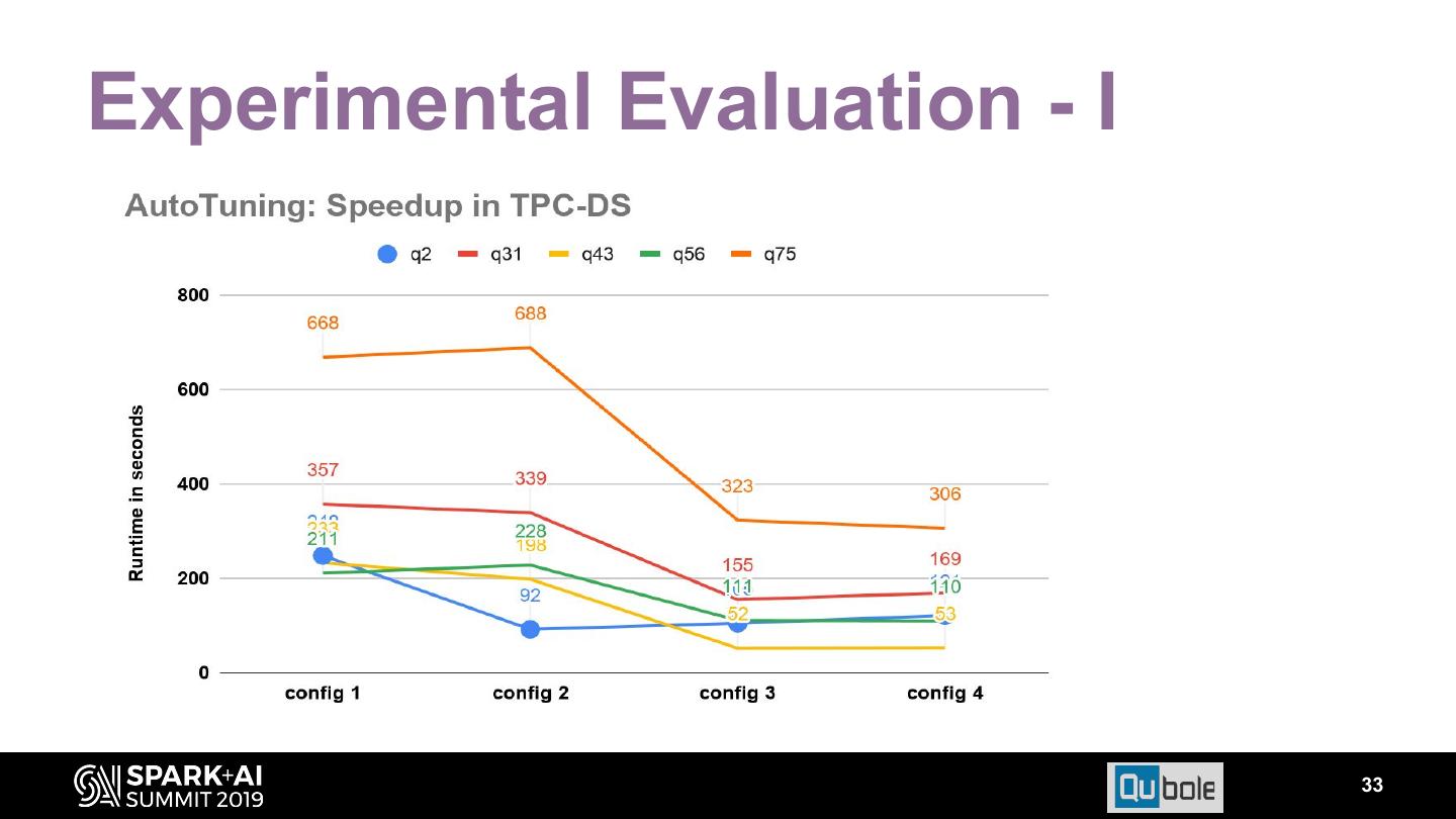 7 . Optimize TPC-DS●q2Manual ● ● Requires Domain Knowledge Analyze query plan ○ 3 Joins in●RedToo many Knobs circle are SortMerge Join ○ All 3 can be converted to Broadcast Join. 7
