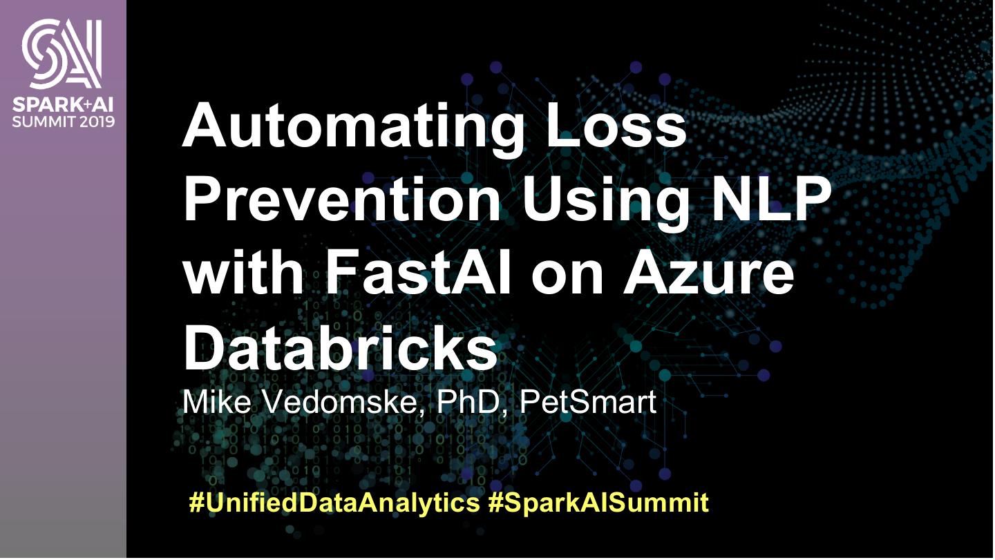 2 .Automating Loss Prevention Using NLP with FastAI on Azure Databricks Mike Vedomske, PhD, PetSmart #UnifiedDataAnalytics #SparkAISummit
