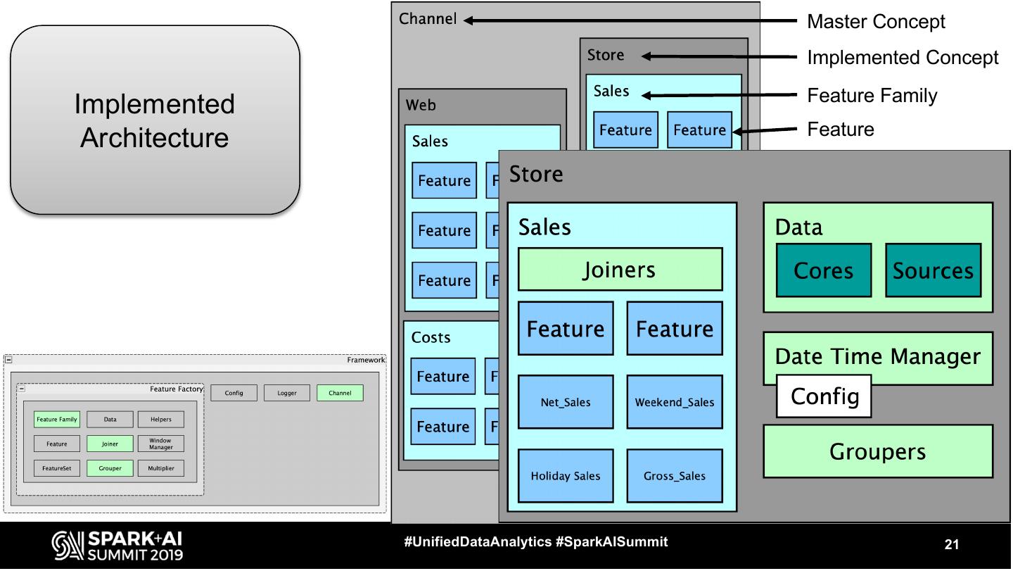 21 . Master Concept Implemented Concept Feature Family Implemented Feature Architecture #UnifiedDataAnalytics #SparkAISummit 21