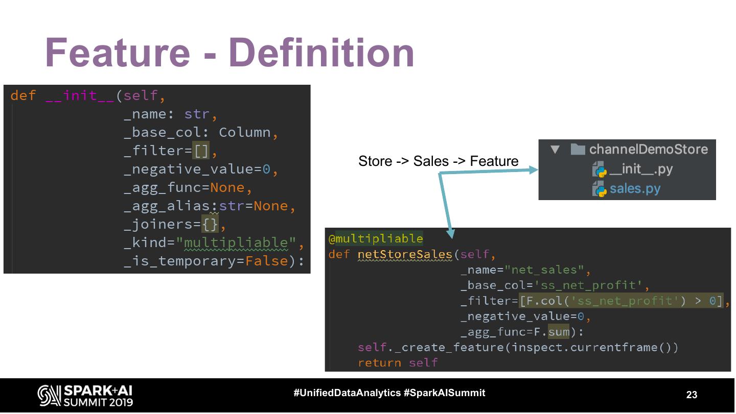 23 .Feature - Definition Store -> Sales -> Feature #UnifiedDataAnalytics #SparkAISummit 23