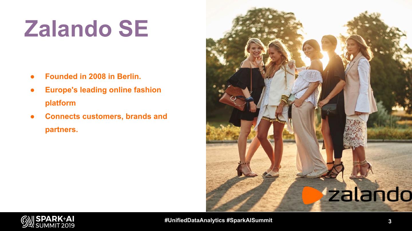 3 .Zalando SE ● Founded in 2008 in Berlin. ● Europe's leading online fashion platform ● Connects customers, brands and partners. #UnifiedDataAnalytics #SparkAISummit 3