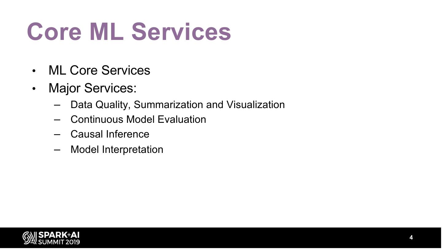 4 .Core ML Services • ML Core Services • Major Services: – Data Quality, Summarization and Visualization – Continuous Model Evaluation – Causal Inference – Model Interpretation 4