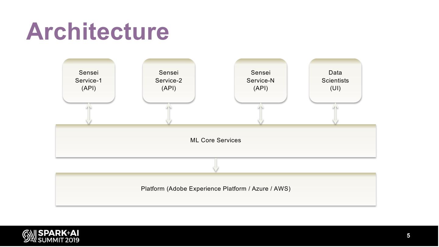 5 .Architecture Sensei Sensei Sensei Data Service-1 Service-2 Service-N Scientists (API) (API) (API) (UI) ML Core Services Platform (Adobe Experience Platform / Azure / AWS) 5