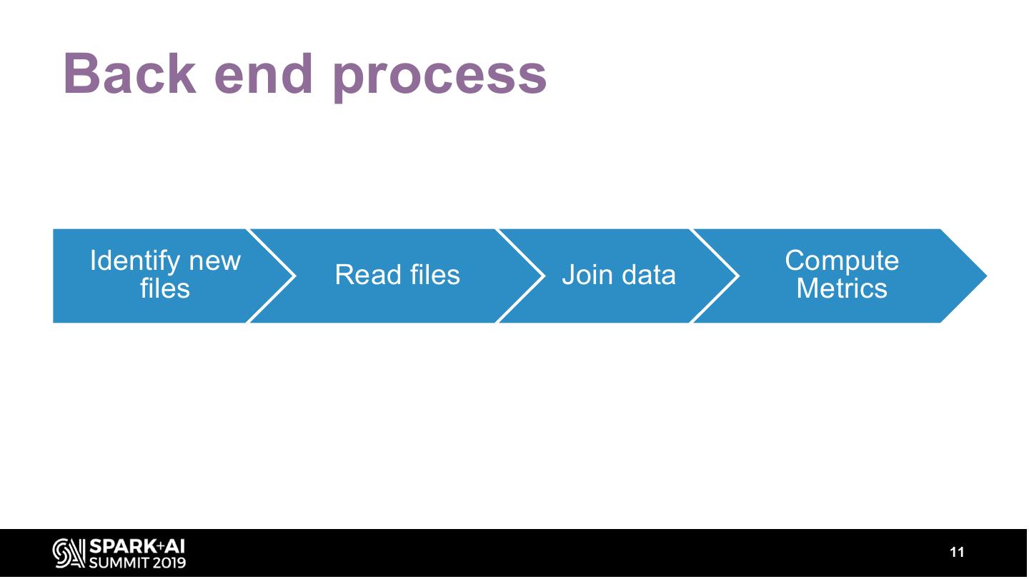 11 .Back end process Identify new Compute files Read files Join data Metrics 11
