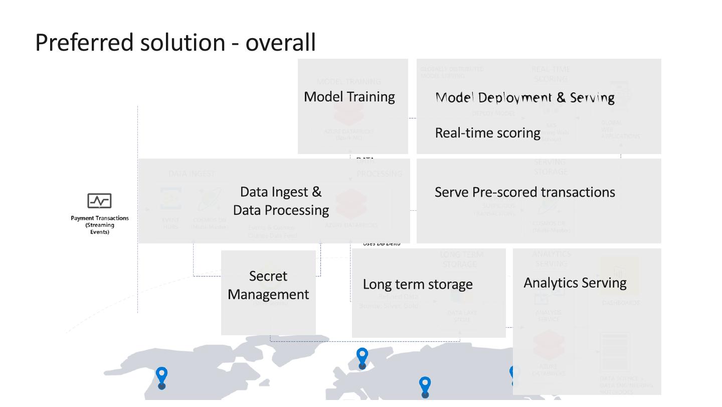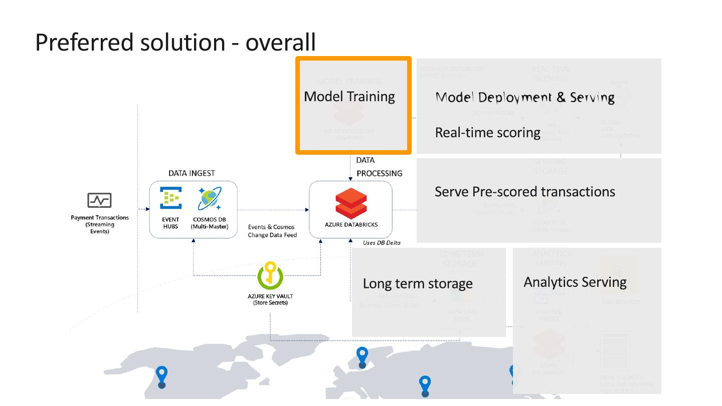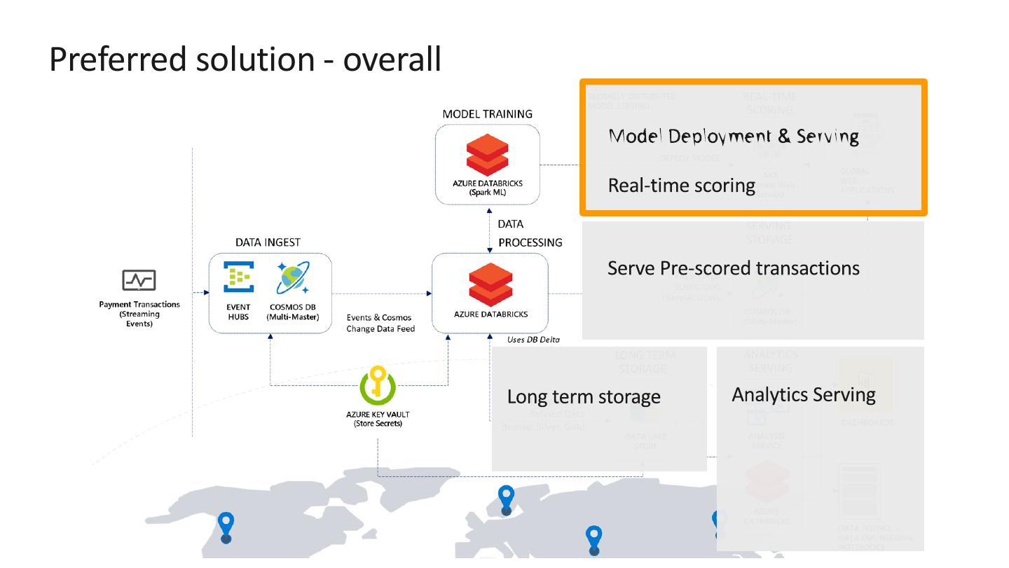 The workshop implements an innovative fraud detection solution as a PoC for a bank who provides payment processing services for commerce to their merchant customers all across the globe, helping them save costs by applying machine learning and advanced analytics to detect fraudulent transactions. Since their customers are around the world, the right solutions should minimize any latencies experienced using their service by distributing as much of the solution as possible, as closely as possible, to the regions in which their customers use the service. The workshop designs a data pipeline solution that leverages Cosmos DB for both the scalable ingest of streaming data, and the globally distributed serving of both pre-scored data and machine learning models. Cosmos DB’s major advantage when operating at a global scale is its high concurrency with low latency and predictable results.