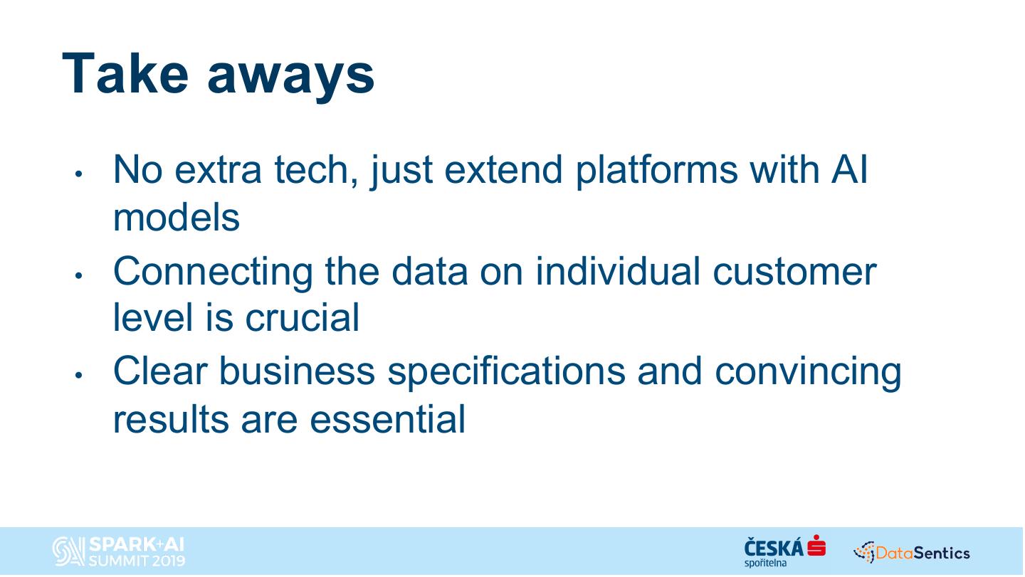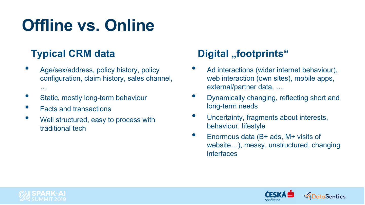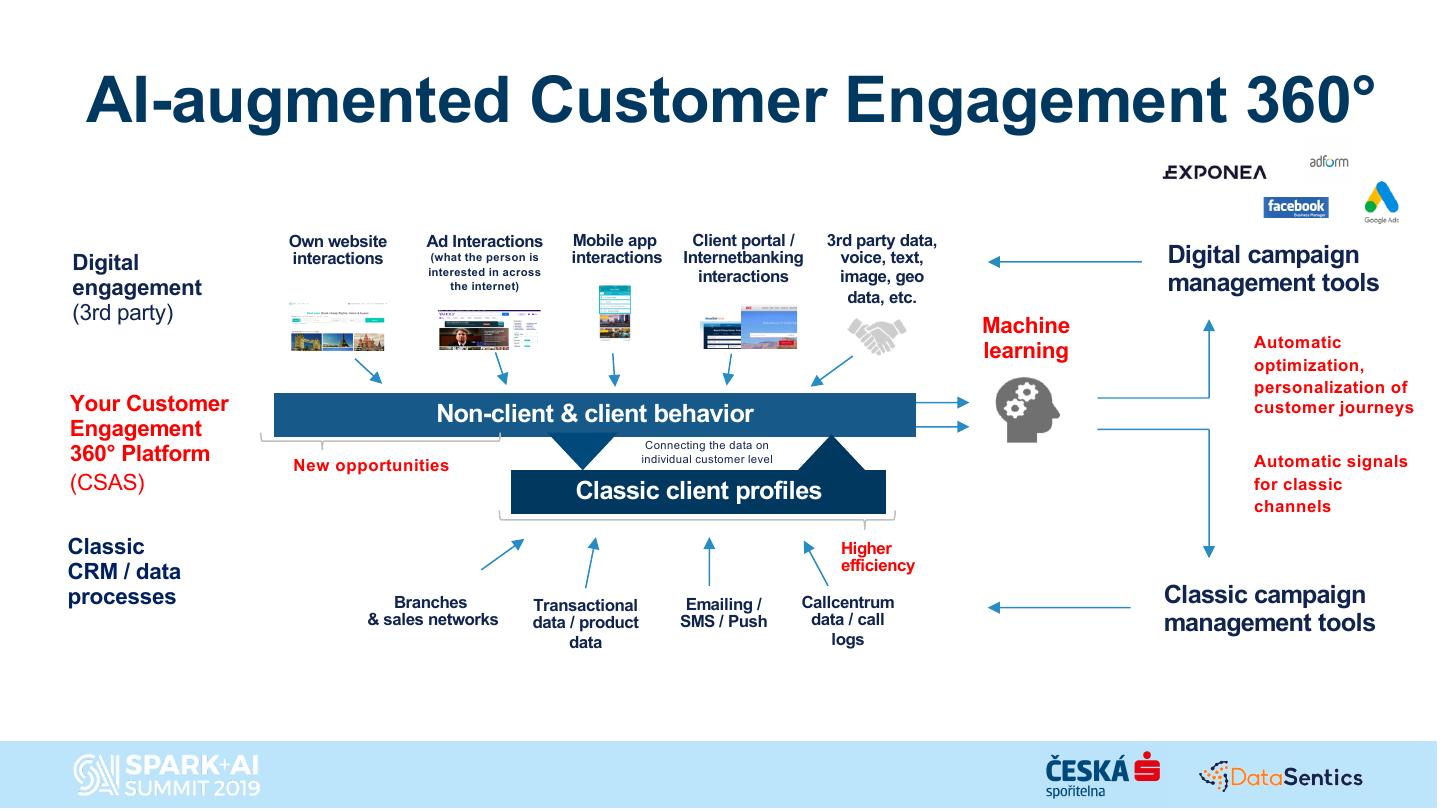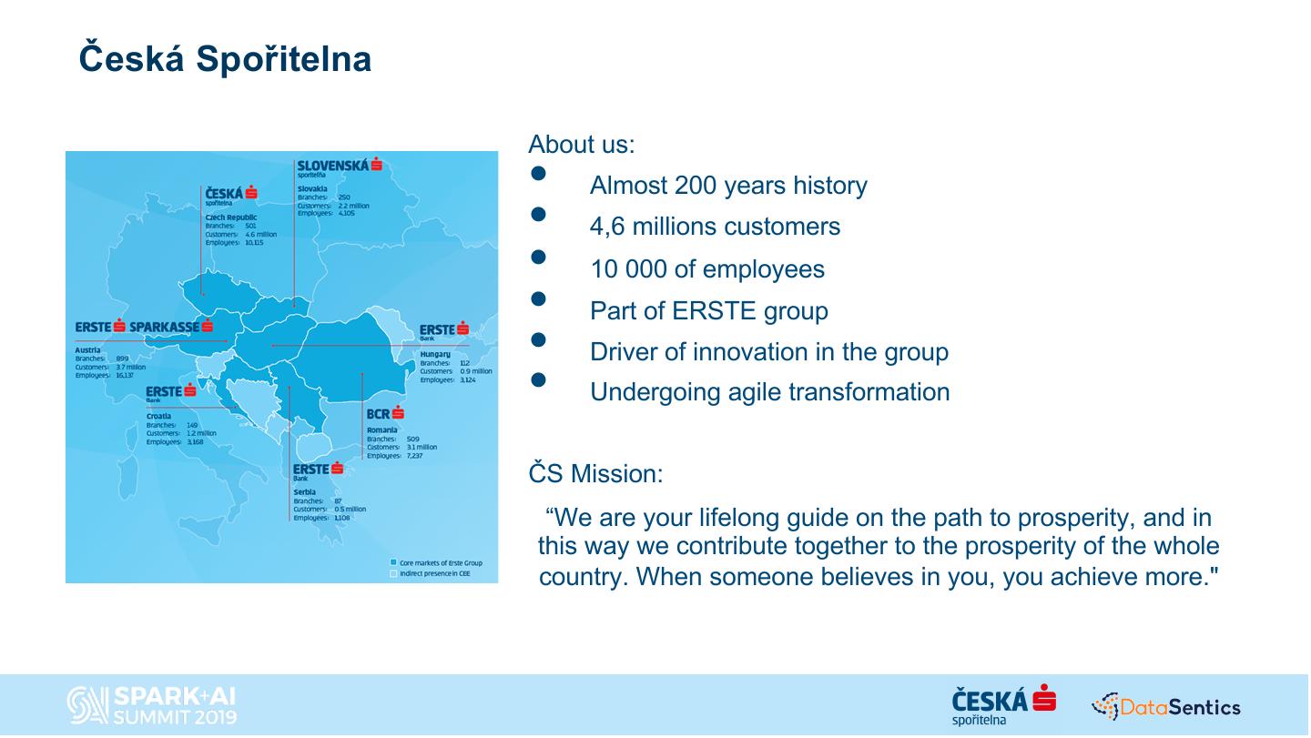 Ceska sporitelna is one of the largest banks in Central Europe and one it’s main goals is to improve the customer experience by weaving together the digital and traditional banking approach. The talk will focus on the story of how in order to reach this goal Ceska Sporitelna created a new team focused on building use cases on top of a combined digital and offline customer engagement 360 powered by a Spark and Databricks-centric agile advanced analytics platform in the Azure cloud combined with a on-prem data lake. This talk will cover: