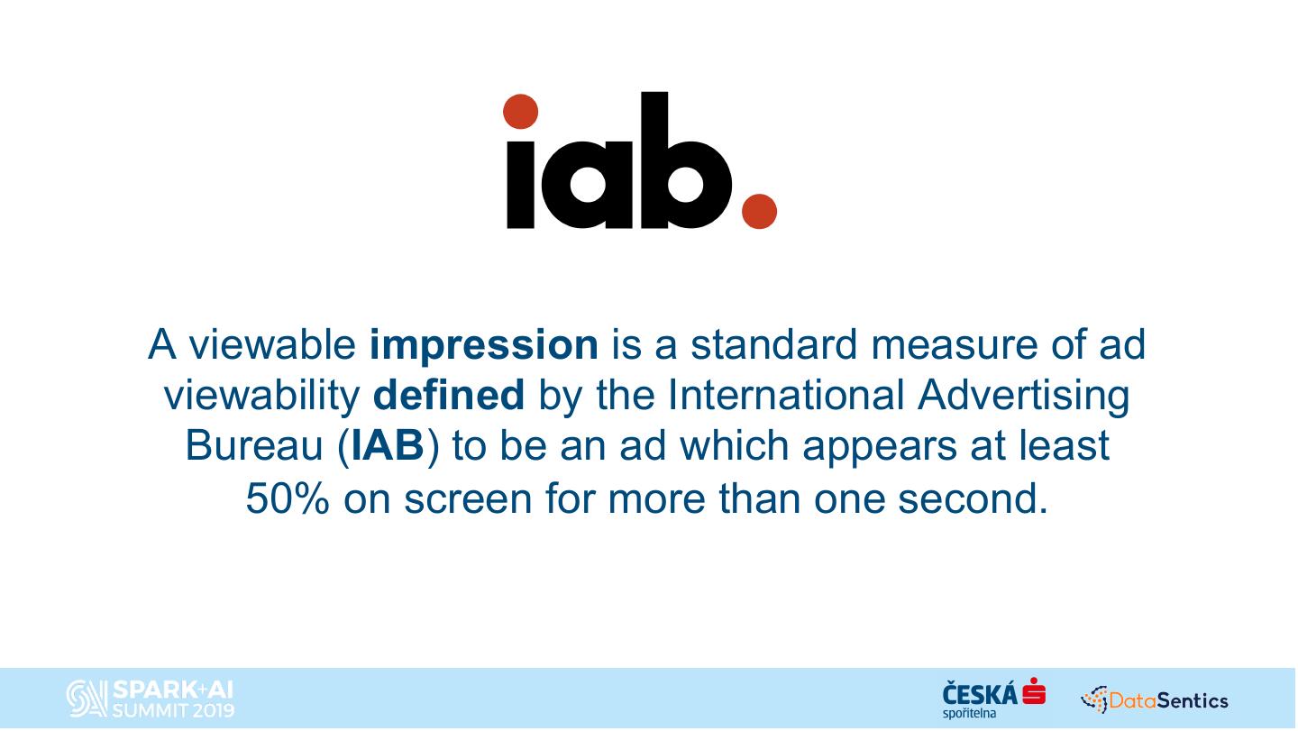 16 .A viewable impression is a standard measure of ad viewability defined by the International Advertising Bureau (IAB) to be an ad which appears at least 50% on screen for more than one second.