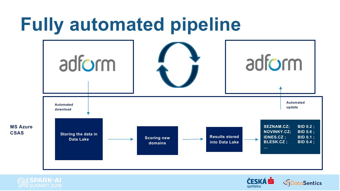 21 . Fully automated pipeline Automated Automated update download MS Azure Whitelists, bid SEZNAM.CZ; BID 0.2 ; CSAS multipliers,BID NOVINKY.CZ; 0.6 ; Storing the data in Scoring new Results stored cookies IDNES.CZ ; lists,BID 0.1 ; Data Lake domains into Data Lake blaclicks, BLESK.CZ ; …BID 0.4 ; …