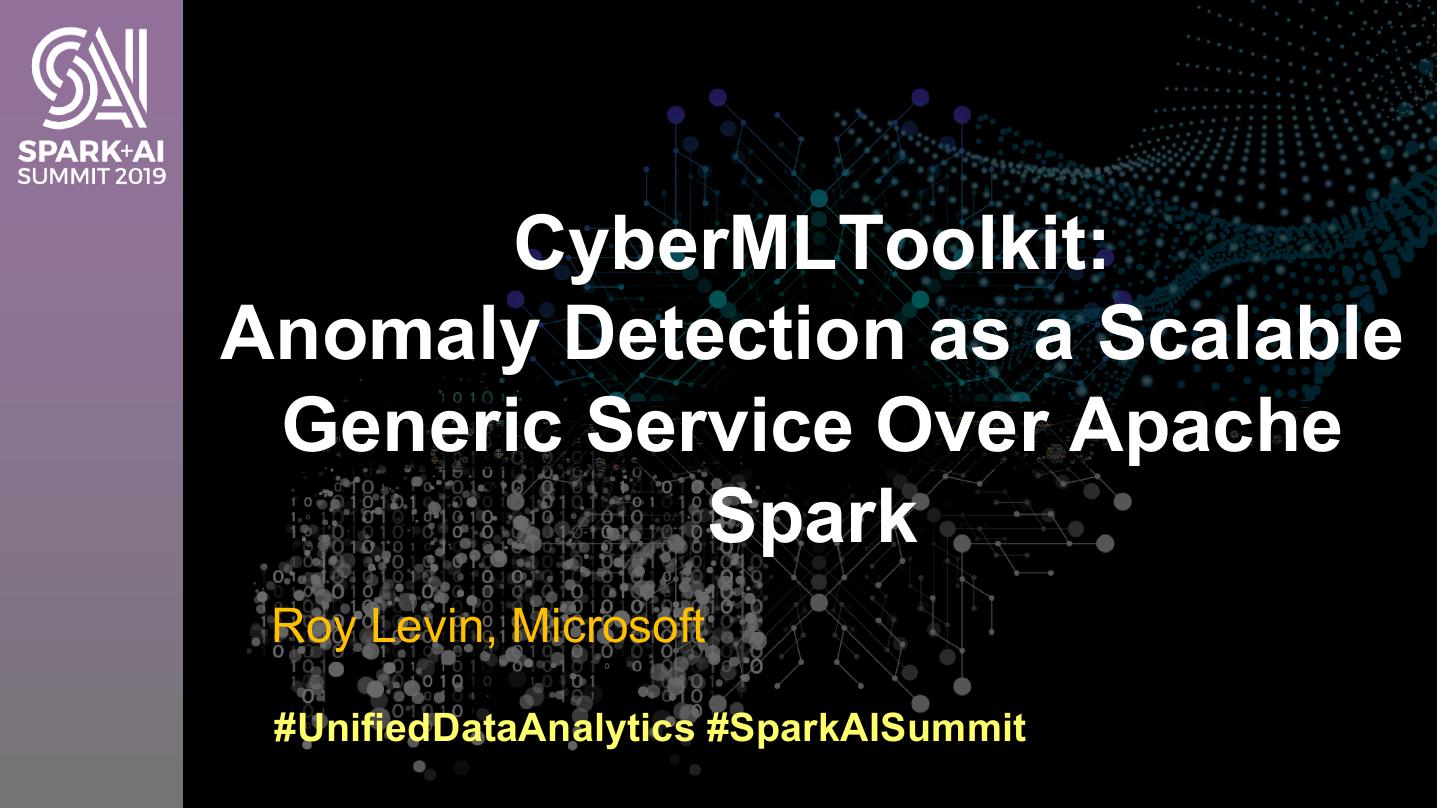 2 . CyberMLToolkit: Anomaly Detection as a Scalable Generic Service Over Apache Spark Roy Levin, Microsoft #UnifiedDataAnalytics #SparkAISummit