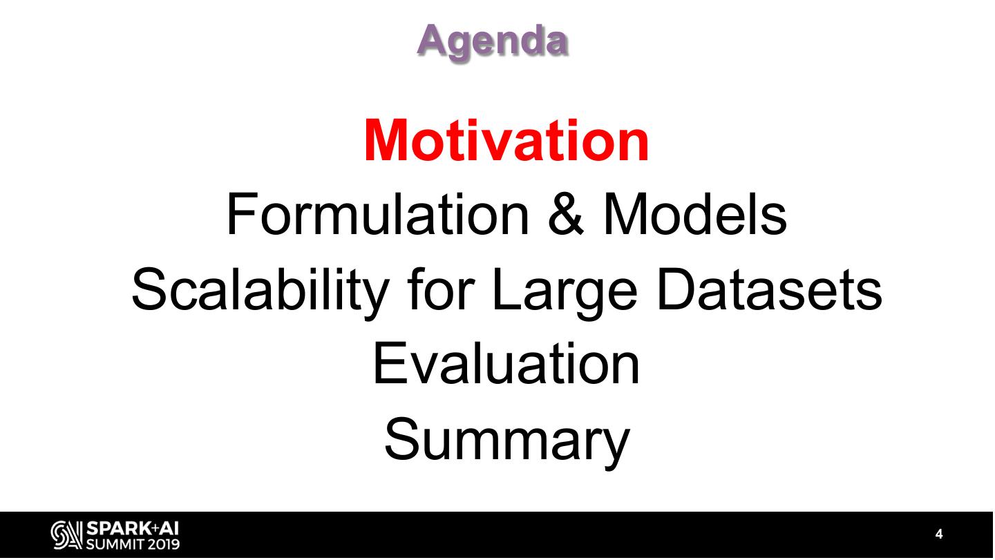 4 . Agenda Motivation Formulation & Models Scalability for Large Datasets Evaluation Summary 4