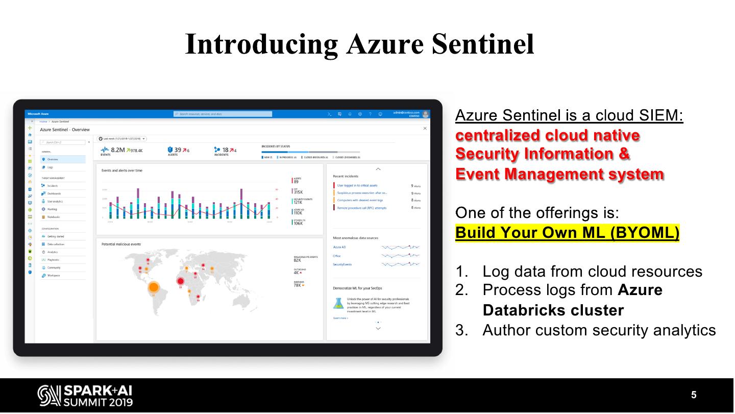 5 .centralized cloud native Security Information & Event Management system Build Your Own ML (BYOML) 1. Log data from cloud resources 2. Process logs from Azure Databricks cluster 3. Author custom security analytics 5