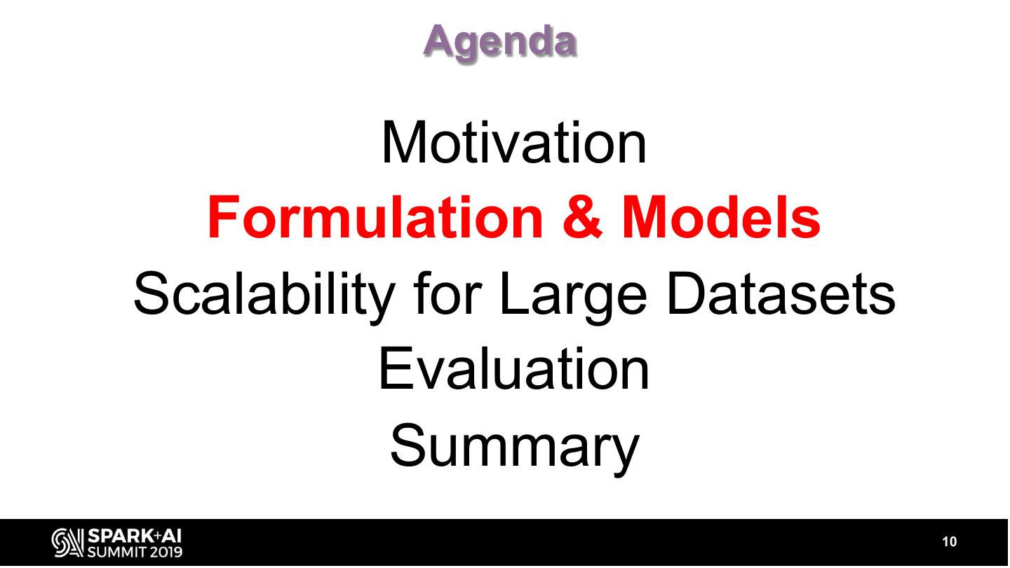 10 . Agenda Motivation Formulation & Models Scalability for Large Datasets Evaluation Summary 10
