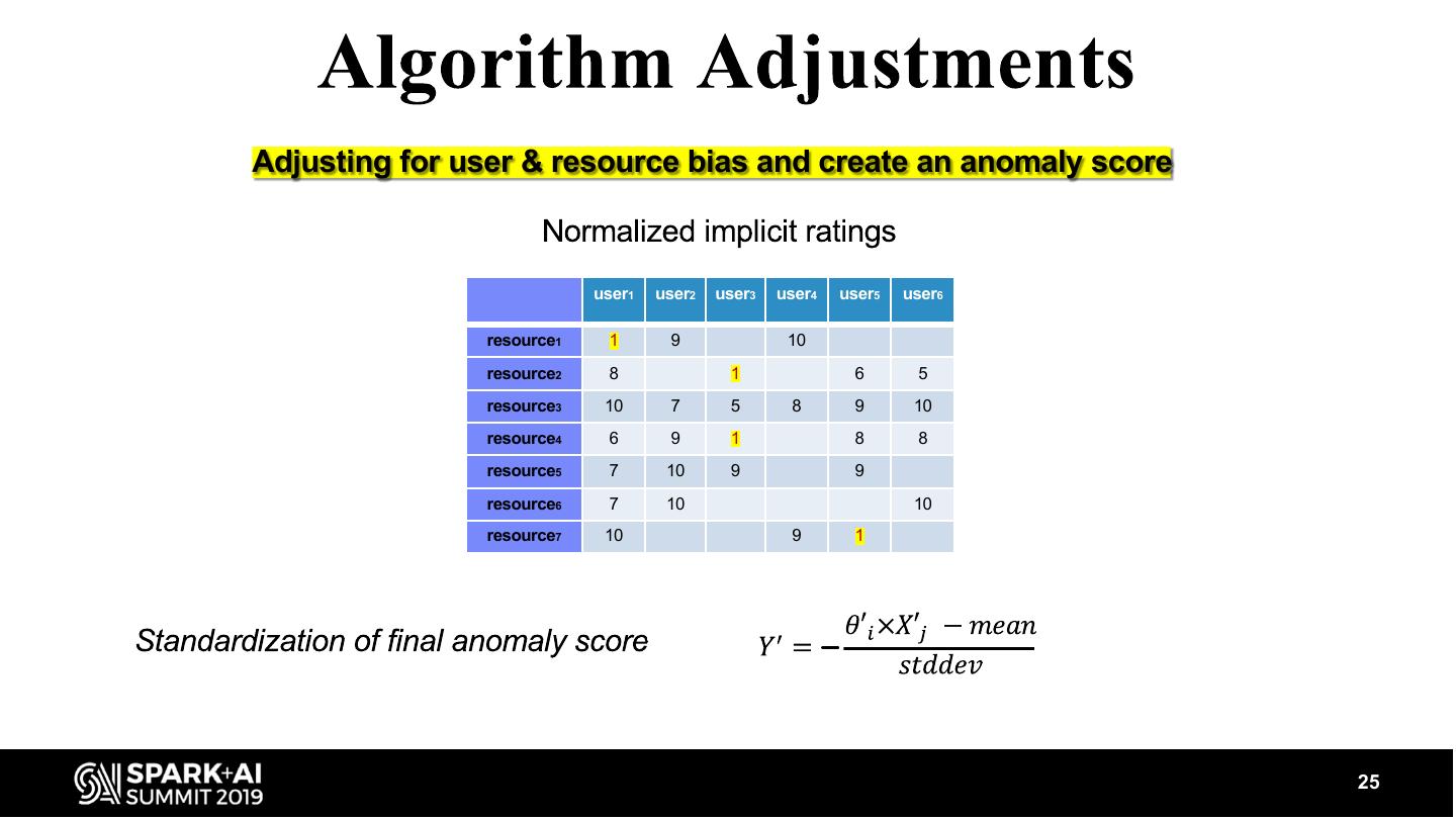25 .Adjusting for user & resource bias and create an anomaly score user1 user2 user3 user4 user5 user6 resource1 1 9 10 resource2 8 1 6 5 resource3 10 7 5 8 9 10 resource4 6 9 1 8 8 resource5 7 10 9 9 resource6 7 10 10 resource7 10 9 1 − 25