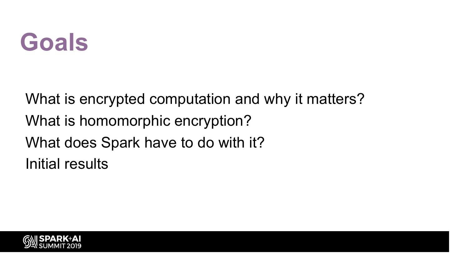 4 .Goals What is encrypted computation and why it matters? What is homomorphic encryption? What does Spark have to do with it? Initial results