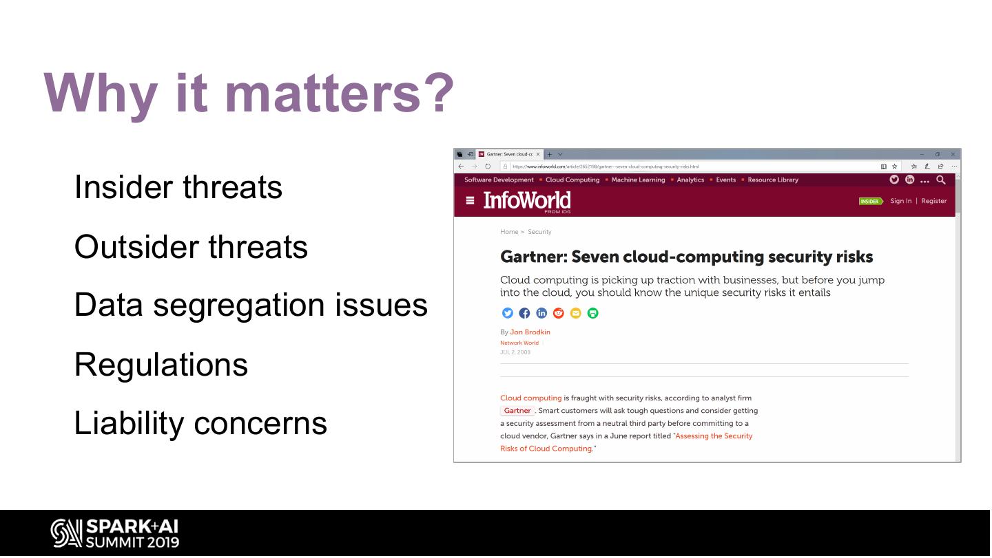 6 .Why it matters? Insider threats Outsider threats Data segregation issues Regulations Liability concerns