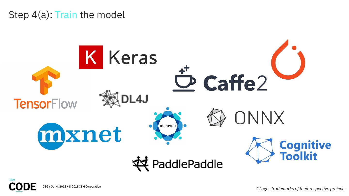 11 .Step 4(a): Train the model DBG / Oct 4, 2018 / © 2018 IBM Corporation * Logos trademarks of their respective projects