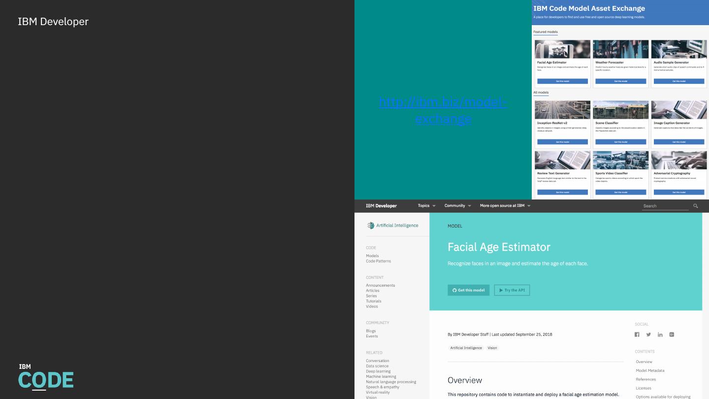 18 .IBM Developer http://ibm.biz/model- exchange DBG / Oct 4, 2018 / © 2018 IBM Corporation
