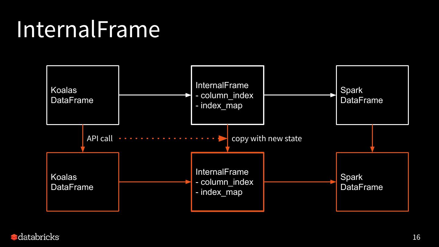 16 .InternalFrame InternalFrame Koalas Spark - column_index DataFrame DataFrame - index_map API call copy with new state InternalFrame Koalas Spark - column_index DataFrame DataFrame - index_map 16