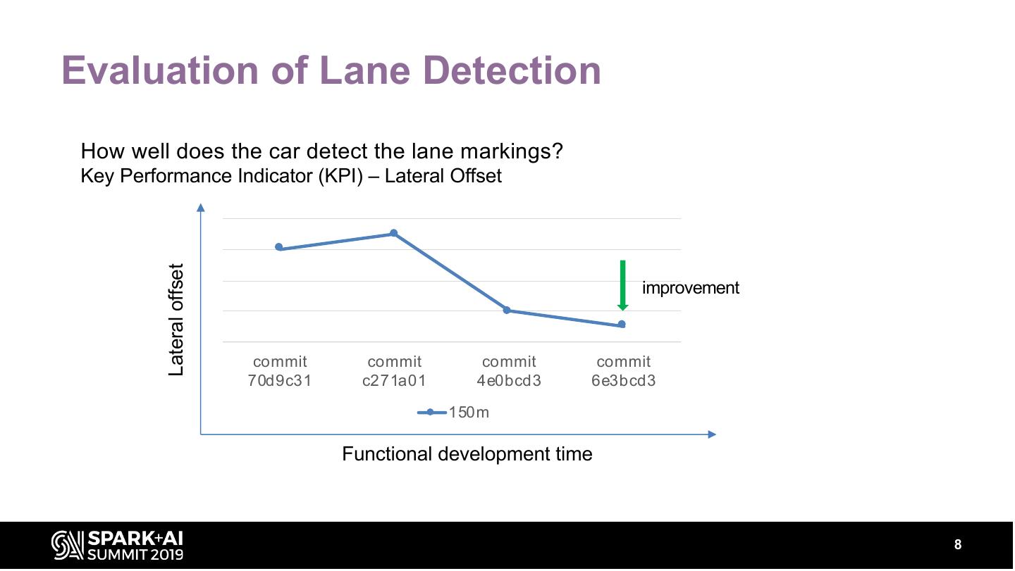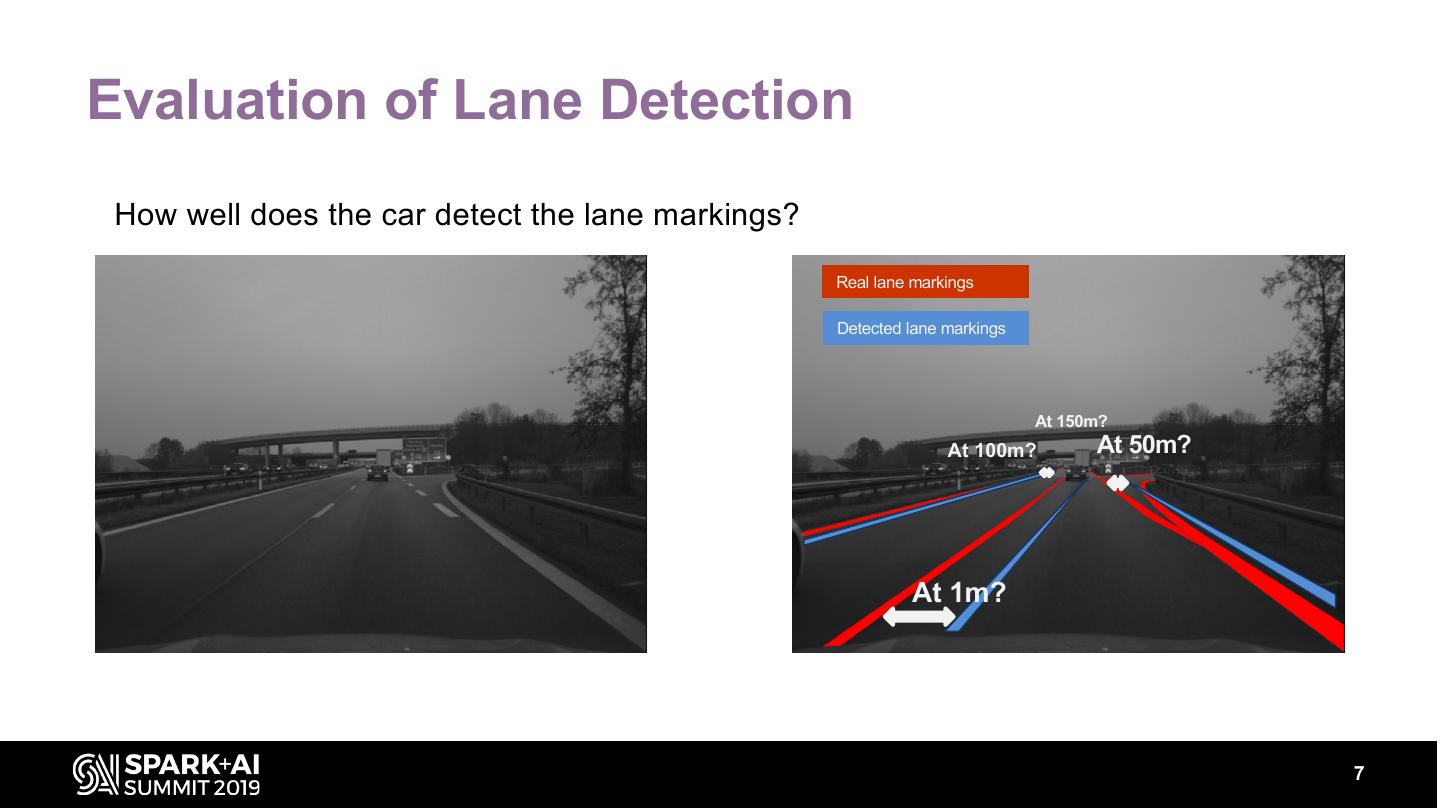 Getting cars to drive autonomously is one of the most exciting problems these days. One of the key challenges is making them drive safely, which requires processing large amounts of data. In our talk we would like to focus on only one task of a self-driving car, namely road detection. Road detection is a software component which needs to be safe for being able to keep the car in the current lane. In order to track the progress of such a software component, a well-designed KPI (key performance indicators) evaluation pipeline is required. In this presentation we would like to show you how we incorporate Spark in our pipeline to deal with huge amounts of data and operate under strict scalability constraints for gathering relevant KPIs. Additionally, we would like to mention several lessons learned from using Spark in this environment.