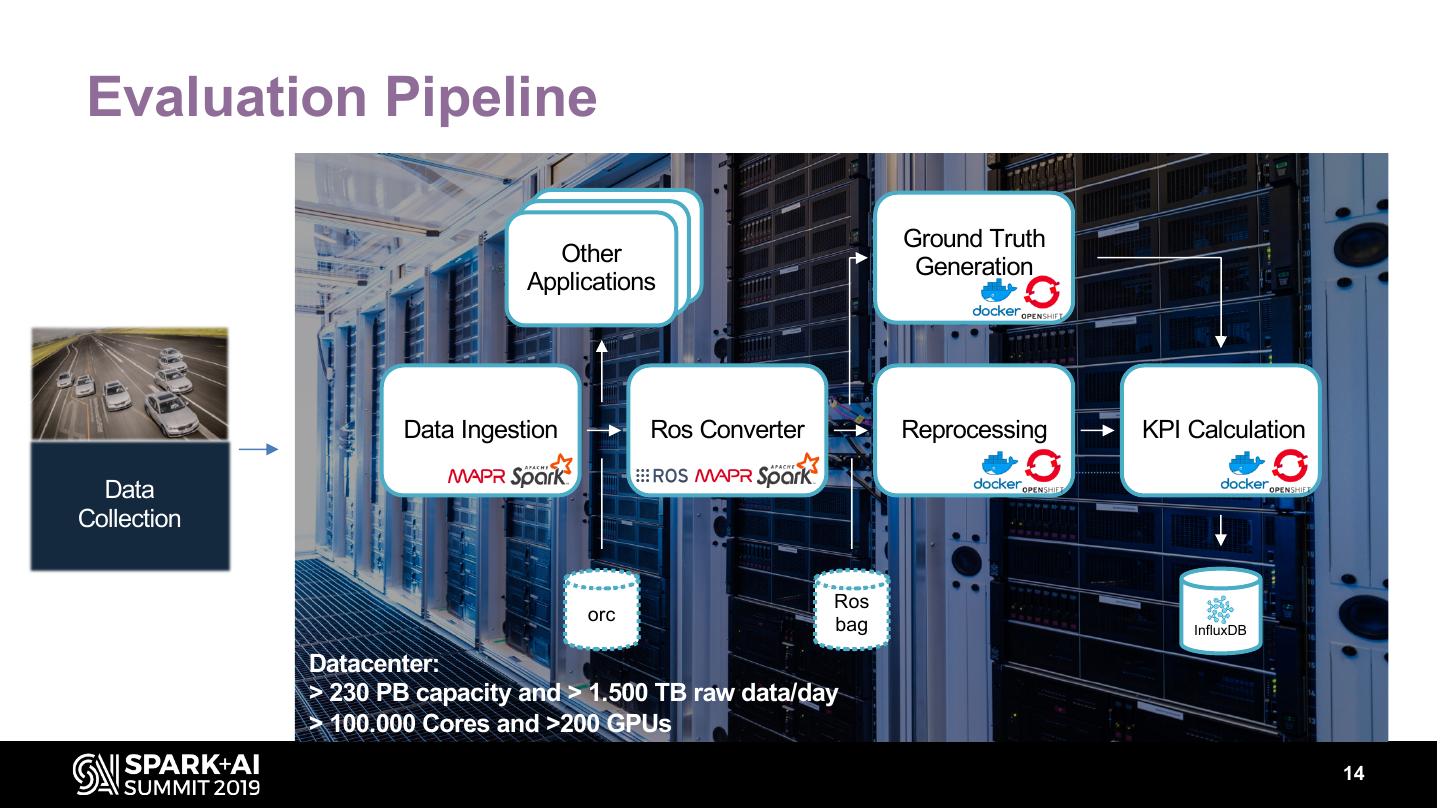 14 .Evaluation Pipeline Other Other Ground Truth Other Applications Applications Generation Applications Data Ingestion Ros Converter Reprocessing KPI Calculation Data Collection Ros orc bag InfluxDB Datacenter: > 230 PB capacity and > 1.500 TB raw data/day > 100.000 Cores and >200 GPUs 14