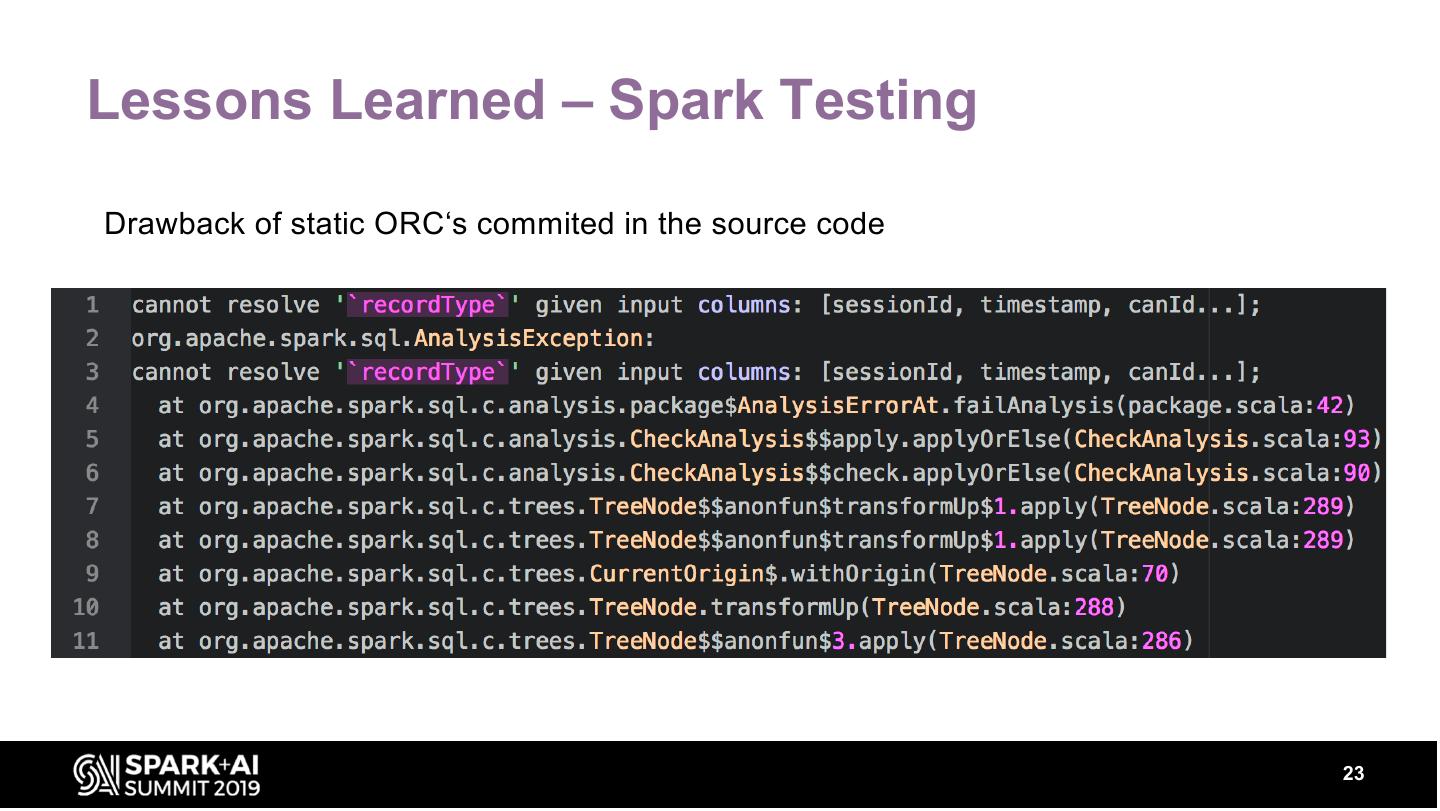 23 .Lessons Learned – Spark Testing Drawback of static ORC‘s commited in the source code 23