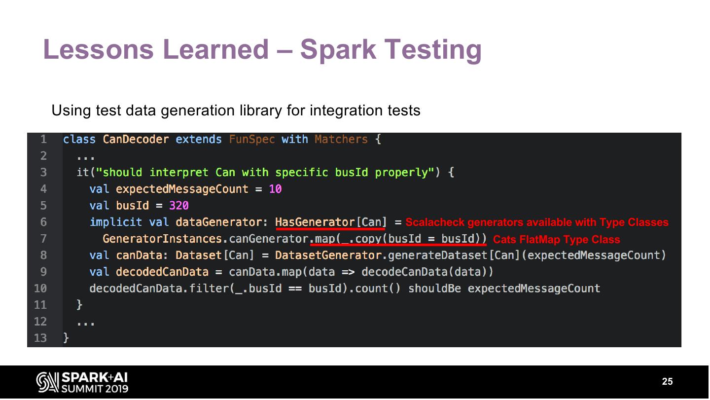 27 .Lessons Learned – Spark Testing Example Typeclass for generating Can Messages 27