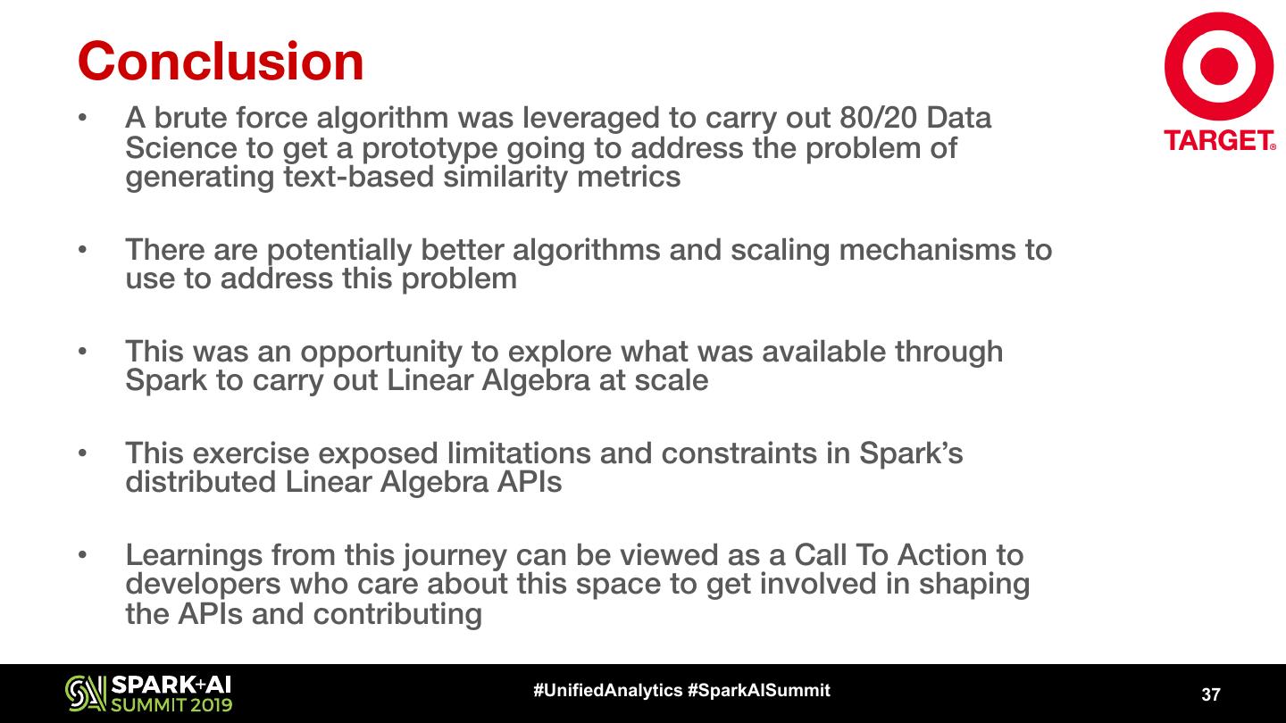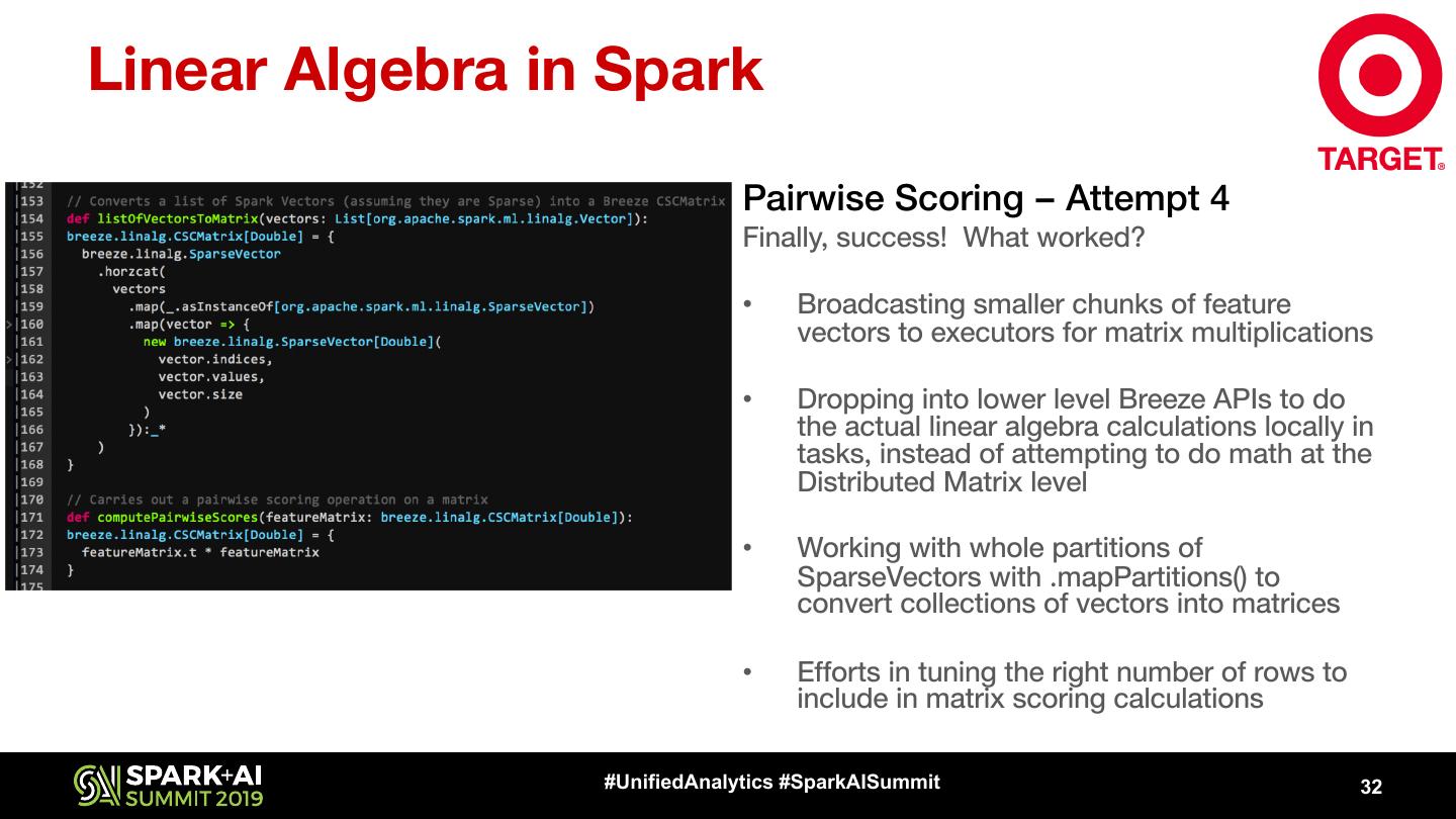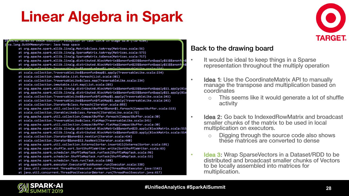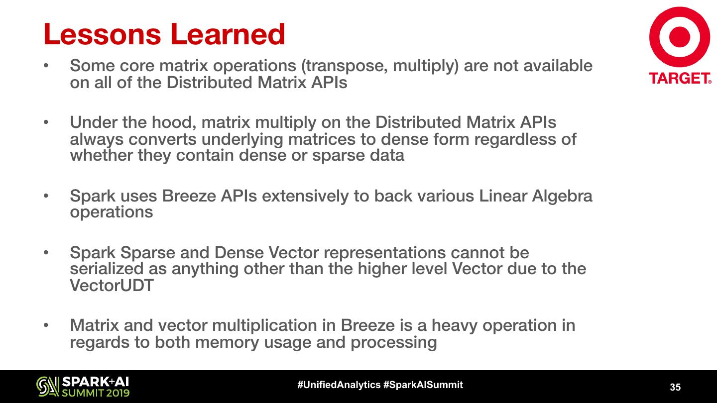 2 .Lessons In Linear Algebra At Scale With Apache Spark Let’s make the sparse details a bit more dense Anna Holschuh, Target #UnifiedAnalytics #SparkAISummit