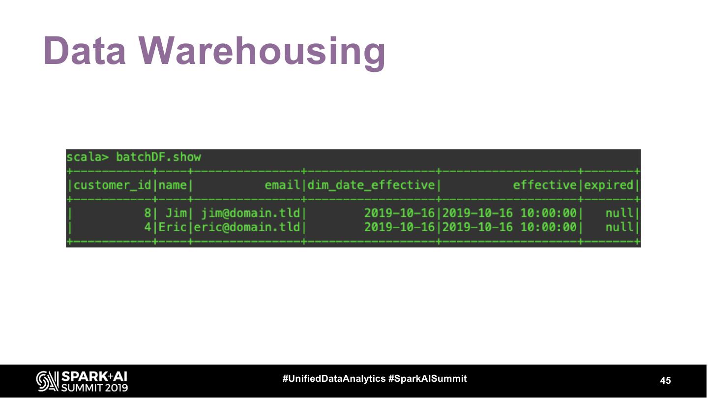 4 .Outline • Structured Streaming – In a nutshell • Delta Lake – How it works • Data Warehousing – Detailed example using these tools – Gotchas #UnifiedDataAnalytics #SparkAISummit 4